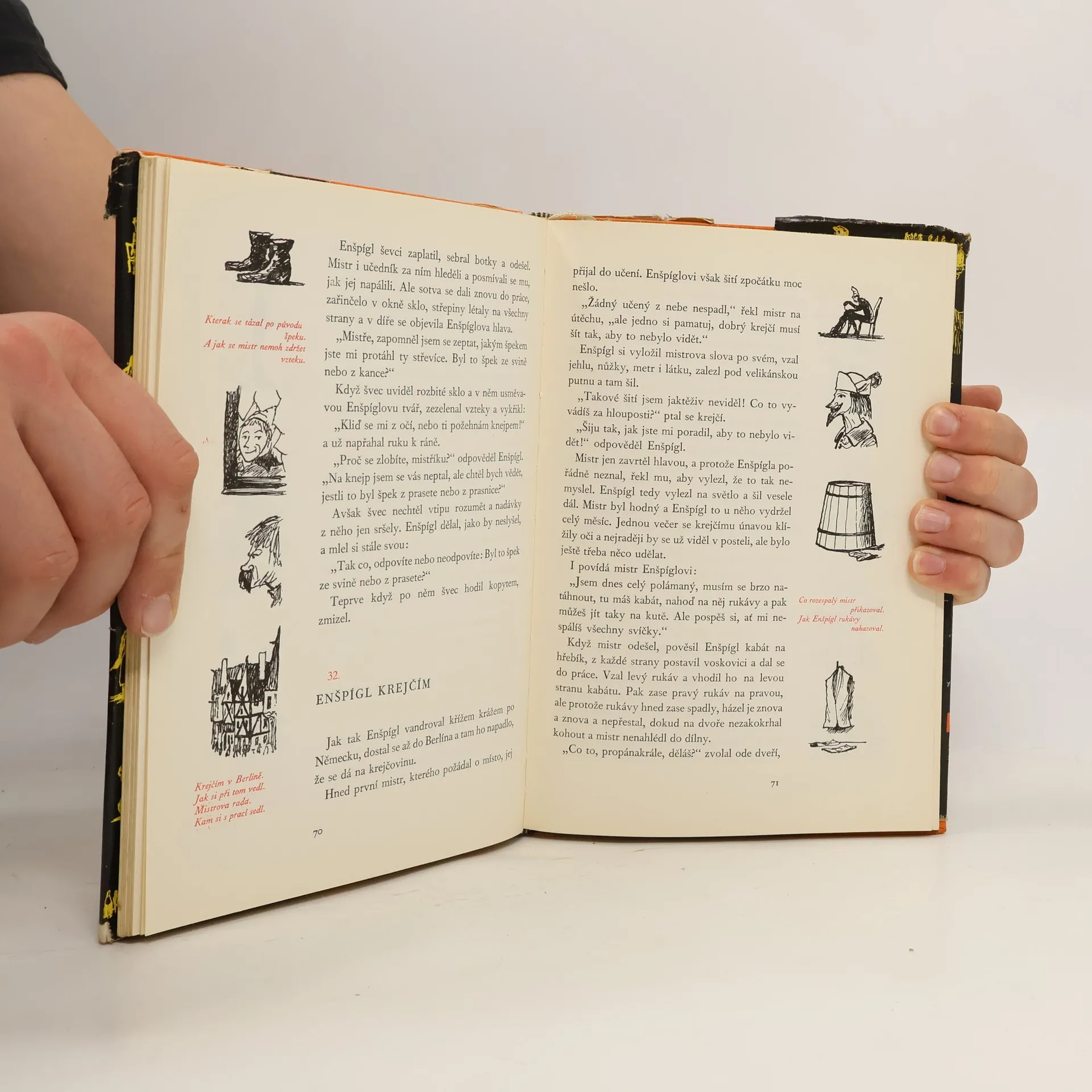 Podle starých německých textů. Pro mládež upravená lidová knížka o Enšpíglovi vypráví o jeho cestách z kraje do kraje a o jeho kouscích, které provádí řemeslníkům, měšťanům, bohatým kupcům a šlechticům. Jeho kousavý vtip míří na nafoukance a chamtivce. Napadá nespravedlnost, bezpráví, křivdu i lidskou hloupost a tropí své šprýmy s úmyslem varovat, napravit i potrestat. Doslov Bohumila Grögerová. 2. vydání.
