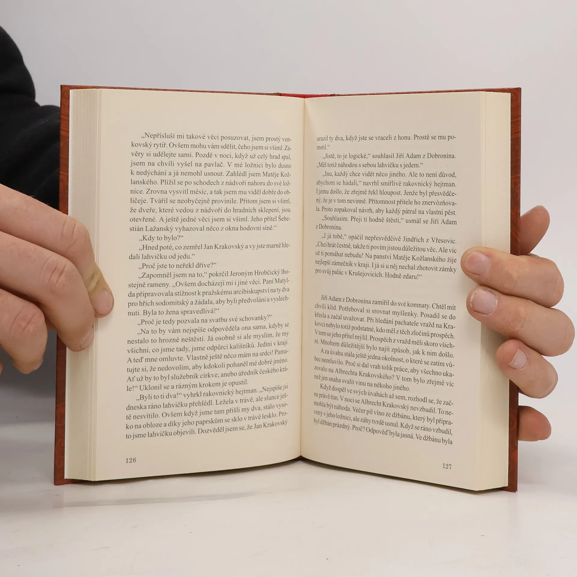 Dva příběhy písaře královské komory Jiřího Adama z Dobronína se odehrávají v polovině 16. století. V příběhu Otrávený pohár pozve královského písaře dávný přítel rakovnický hejtman na svatbu na hrad Krakovec. Jenže dříve, než vypukne svatební veselí, kdosi otráví ženicha. A záhy dojde k další vraždě. Motiv je zdánlivě jasný, stejně jako vrah. Přesto Jiřímu Adamovi cosi nesouhlasí, a proto se dá do usilovného pátrání. Druhý příběh Smrt mučednice se odehrává v prostředí divadelní společnosti, kterou pozve nejvyšší hofmistr do Posázaví na svůj hrad Šternberk, aby sehrála představení o umučení svaté Doroty. Jenže herečka, která představuje mučednici, zemře doopravdy. Hofmistr se však domnívá, že zemřít měla jeho dcera. Proto požádá Jiřího Adama z Dobronína o diskrétní vyšetření případu, neboť na Šternberk má přijet česká královna.
