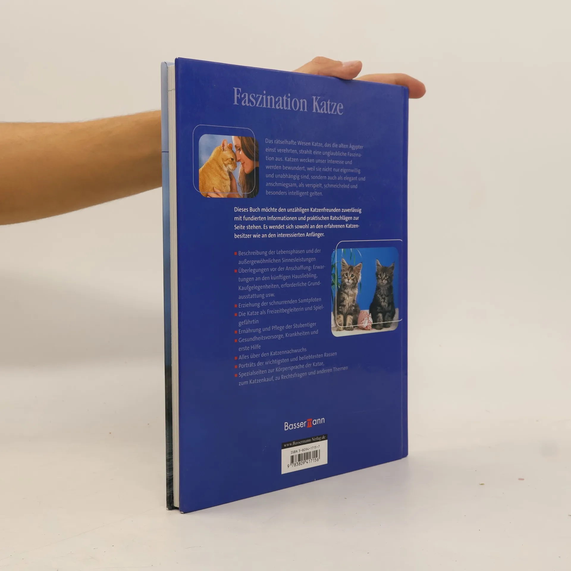 Das rätselhafte Wesen Katze, das schon die alten Ägypter verehrten, strahlt eine unglaubliche Faszination aus. Katzen wecken unser Interesse und werden bewundert, weil sie nicht nur eigenwillig und unabhängig sind, sondern auch als elegant und anschmiegsam, als verspielt, schmeichelnd und besonders intelligent gelten. Erfahren Sie in diesem Buch Wissenswertes zu den Lebensphasen und Sinnesleistungen Ihrer Katze, zu Gesundheitsvorsorge, Krankheit und erster Hilfe, zu Aufzucht und Fortpflanzung, den schönsten Katzenrassen und vieles mehr. Fundierte Informationen und praktische Ratschläge zu Haltung, Ernährung, Pflege, Erziehung und Rassen Sowohl für erfahrene Katzenbesitzer als auch für interessierte Anfänger