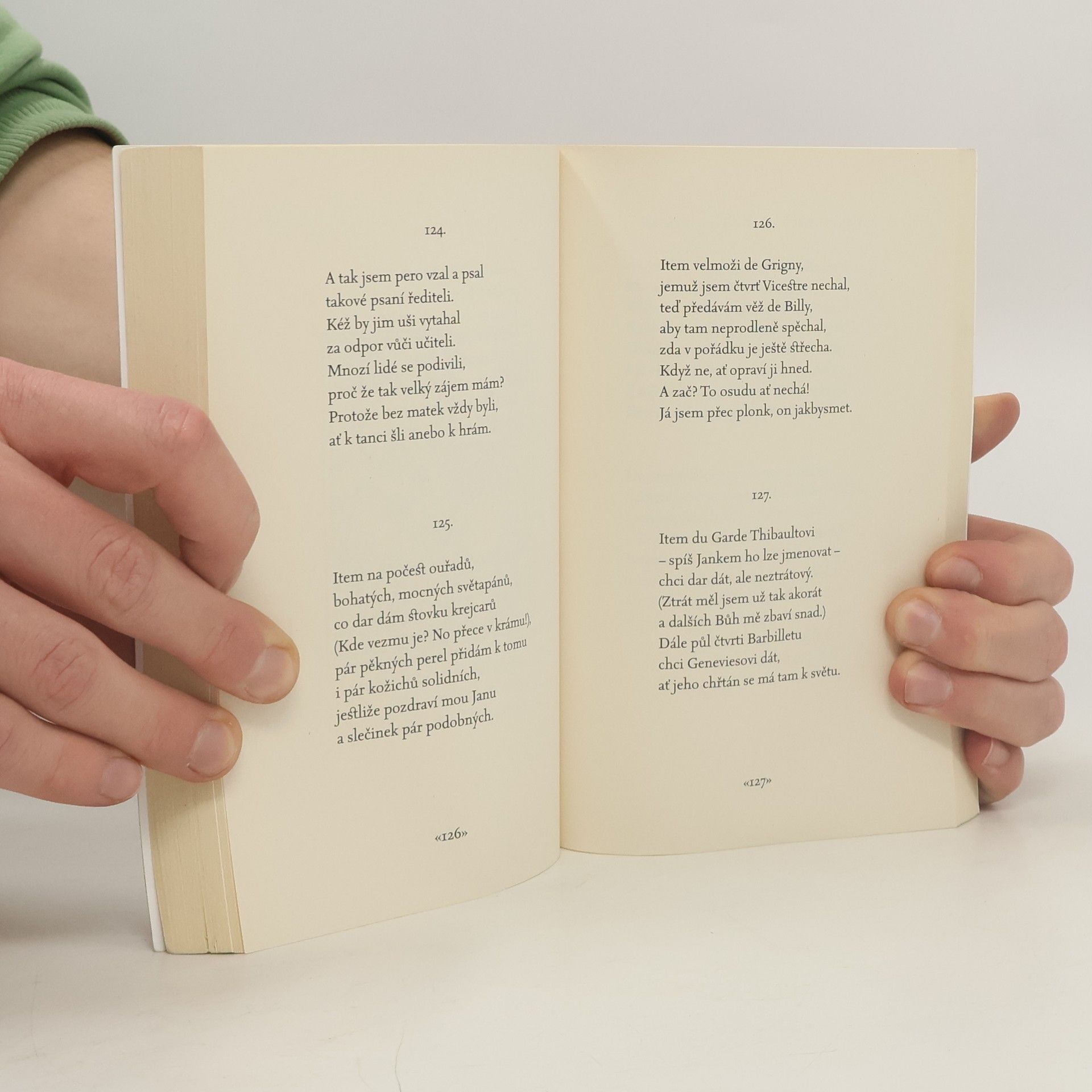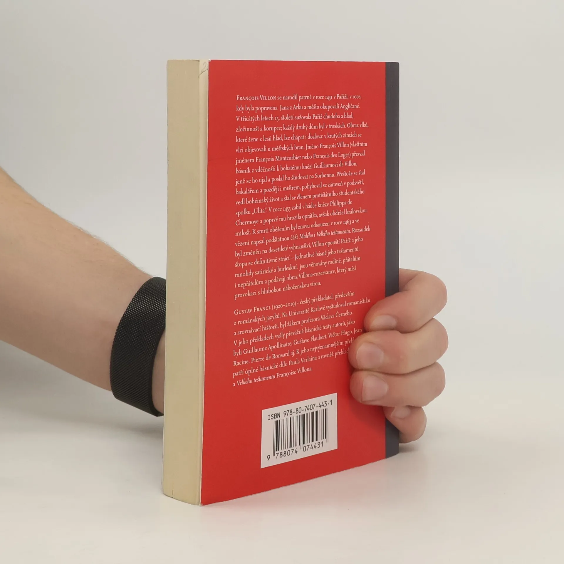Kniha obsahuje historicky první úplný překlad Villonova Malého i Velkého testamentu včetně balad, písní, rondeaux a epitafů. Villonův život si čtenář musí složit z hrstky útržkovitých, ale mimořádně výmluvných faktů. Narodil se v roce 1431 nebo1432 a vystudoval fakultu svobodných umění pařížské univerzity. Nebyl asi tak úplně špatný student:dotáhl to až na mistra (1452) a jeho veršesvědčí o sice nijak mimořádné, ale dosti širokévzdělanecké kultuře. V roce 1455 zabil v hádcekněze Philippa de Chermoye a od té chvíle nabraljeho život nový směr. Rok nato byl sice omilostněna mohl se vrátit do Paříže, ale ještě téhož roku sepodílel na krádeži 500 zlatých pistolí v Navarrskékoleji a musel znovu uprchnout. Léto 1461 strávilve vězení v Meungu z příkazu orleánského biskupa;byl propuštěn, když městem projížděl novýkrál Ludvík XI. Po návratu do Paříže se znovu zapletldo rvaček a krádeží a v roce 1462 byl zatčena odsouzen k oběšení. Poté co byl rozsudek změněnna desetileté vyhnanství, opustil Villon Paříža jeho stopa se definitivně ztrácí.