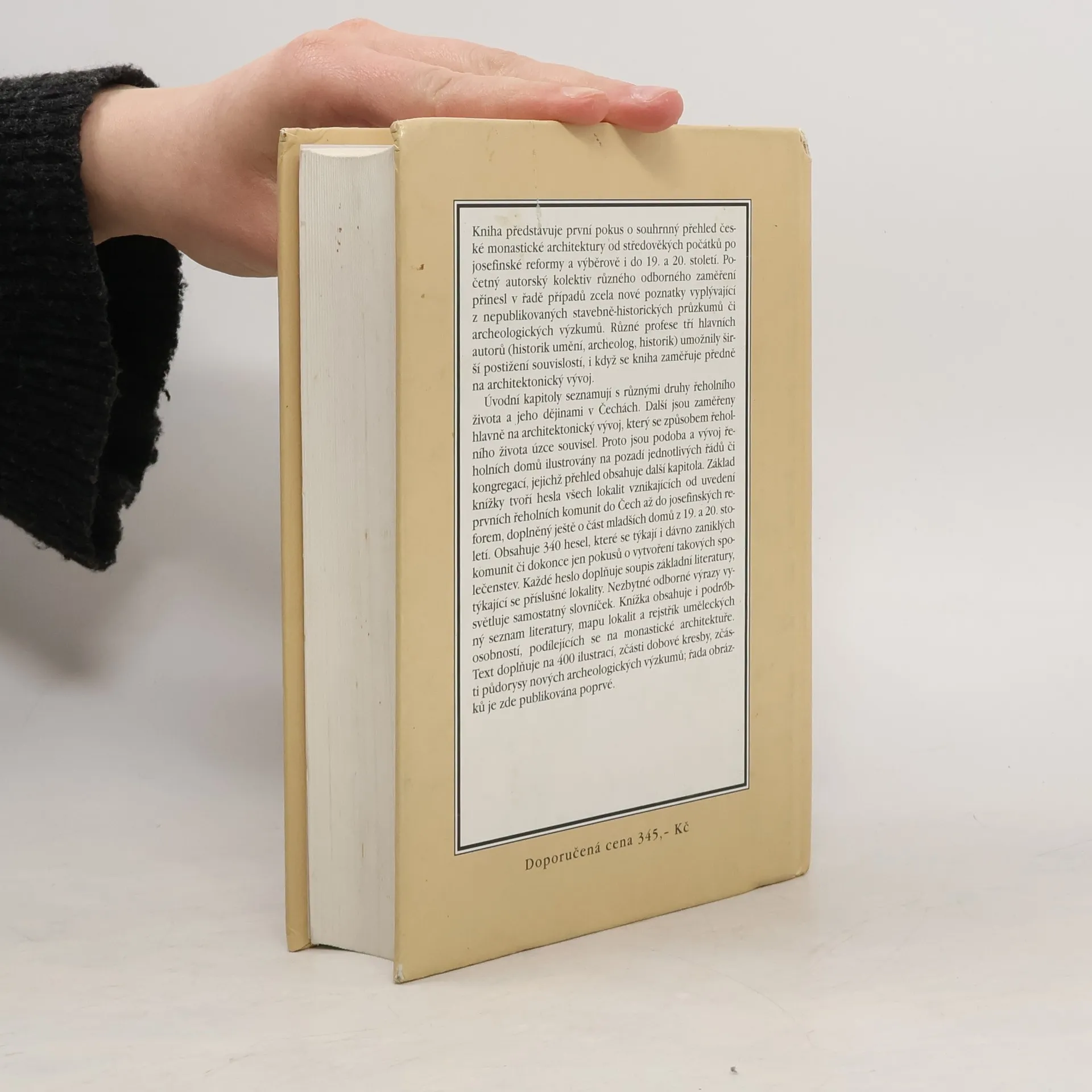 Kniha představuje první pokus o souhrnný přehled české monastické architektury od středověkých počátků po josefínské reformy a výběrově i do 19. a 20. století. Početný autorský kolektiv různého odborného zaměření přinesl v řadě případů zcela nové poznatky vyplývající z nepublikovaných stavebně-historických průzkumů či archeologických výzkumů. Různé profese tří hlavních autorů (historik umění, archeolog, historik) umožnily širší postižení souvislostí, i když se kniha zaměřuje předně na architektonický vývoj. Úvodní kapitoly knihy seznamují čtenáře s různými druhy řeholního života a jeho dějinami v Čechách. Další jsou zaměřeny především na architektonický vývoj, který se způsobem řeholního života úzce souvisel. Základ encyklopedie však tvoří hesla všech lokalit vznikajících od uvedení prvních řeholních komunit do Čech až po josefínské reformy, doplněné ještě výběrově o část mladších domů z 19. a 20. století. Obsahuje na 340 hesel, které se týkají i dávno zaniklých komunit či jen pokusů o vytvoření takových společenstev. Každé heslo doplňuje soupis základní literatury, týkající se příslušné lokality. Nezbytné odborné výrazy vysvětluje samostatný slovníček. Knížka obsahuje i podrobný seznam literatury, mapu lokalit a rejstřík uměleckých osobností, podílejících se na monastické architektuře. Text doplňuje na 400 ilustrací, zčásti dobové kresby, zčásti půdorysy nových archeologických výzkumů; řada obrázků je zde publikována poprvé. Tato publikace se umístila na 1.-2. místě ankety historiků časopisu Dějiny a současnost o nejlepší historickou knihu roku 1997. První vydání 1997. Dotisk 1998, 2000, 2002. První vydání 5000 výt., dotisky 2000 výt.