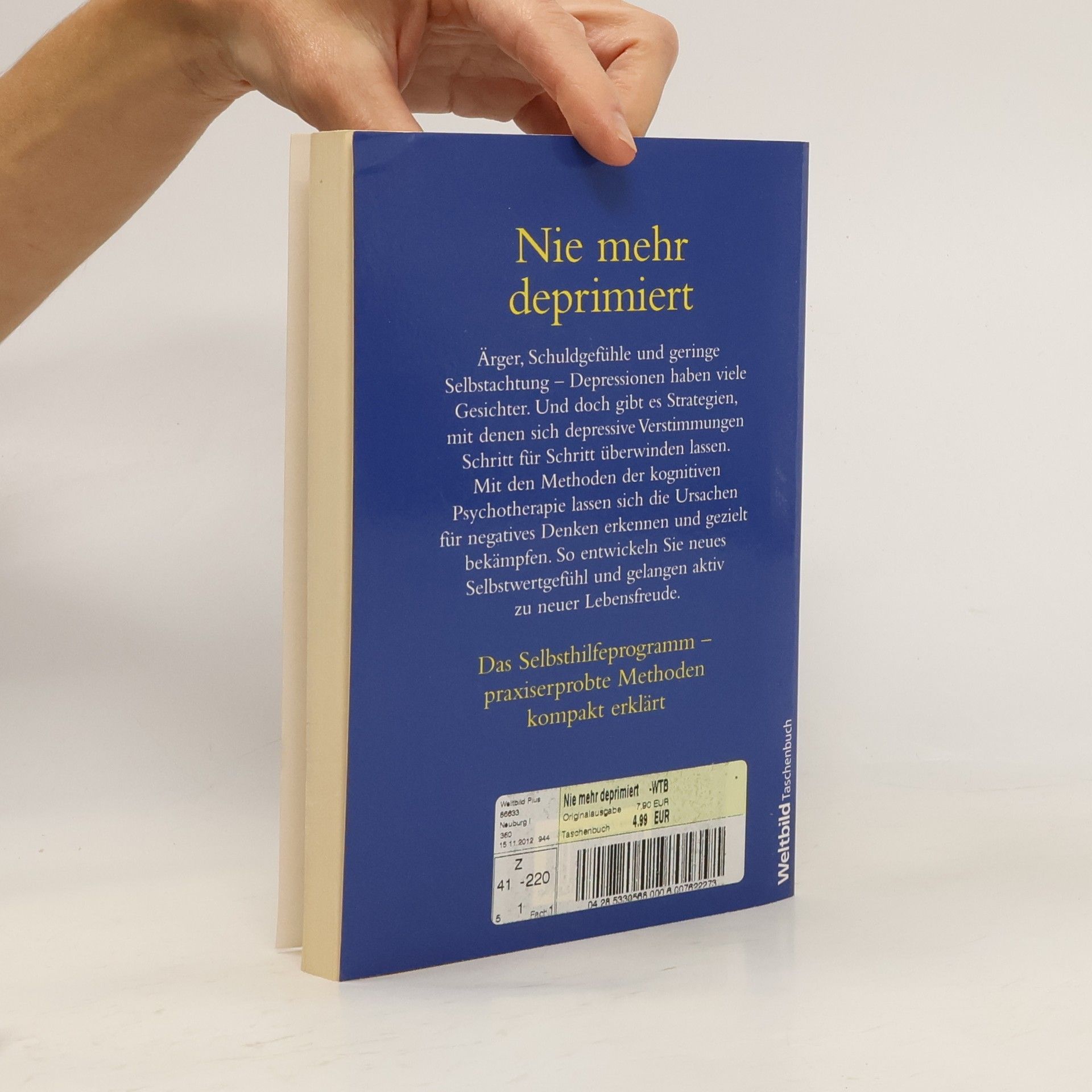 Angst, Sorgen, Ärger, Schuld- und Minderwertigkeitsgefühle und depressive Stimmungen müssen nicht sein. Jeder besitzt die Fähigkeit, sie selbst zu überwinden und sich vor der inneren Zerrissenheit und dem daraus resultierenden körperlichen Unwohlsein zu schützen. Wie, steht in diesem Buch. "Nie mehr deprimiert“ ist ein Selbsthilfeprogramm. Es nutzt die Erkenntnisse der modernen Psychotherapie, insbesondere der kognitiven Therapie: Wer die Ursachen seiner depressiven Verstimmungen bewusst erkennt und auf seine innersten Gefühle hört, kann aktiv gegen seine innere Unausgeglichenheit vorgehen. Lernen Sie: * Ihre Depression richtig einzuschätzen, * negatives Denken abzulegen, * neue Selbstachtung aufzubauen, * aktiv zu neuer Lebensfreude zu gelangen. (Amazon.de)