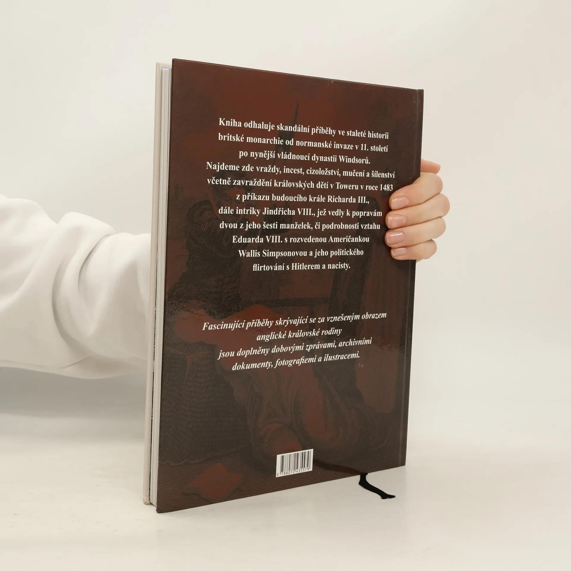 Kniha odhaluje skandální příběhy ve staleté historii britské monarchie od normanské invaze v 11. století po nynější vládnoucí dynastii Windsorů. Najdeme zde vraždy, incest, cizoložství, mučení a šílenství včetně zavraždění královských dětí v Toweru v roce 1483 z příkazu budoucího krále Richarda III., dále intriky Jindřicha VIII., jež vedly k popravám dvou z jeho šesti manželek, či podrobnosti vztahu Eduarda VIII. s rozvedenou Američankou Wallis Simpsonovou a jeho politického flirtování s Hitlerem a nacisty. Fascinující příběhy skrývající se za vznešeným obrazem anglické královské rodiny jsou doplněny dobovými zprávami, archívními dokumenty, fotografiemi a ilustracemi.