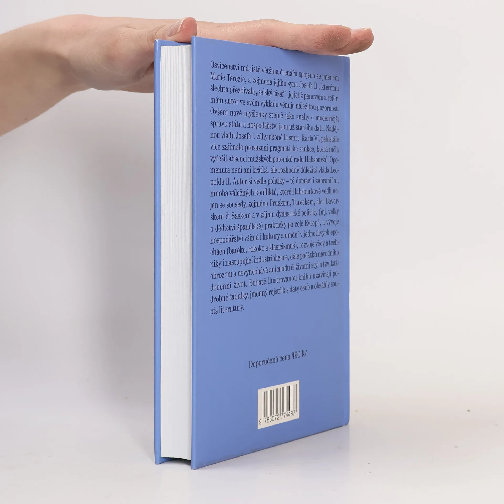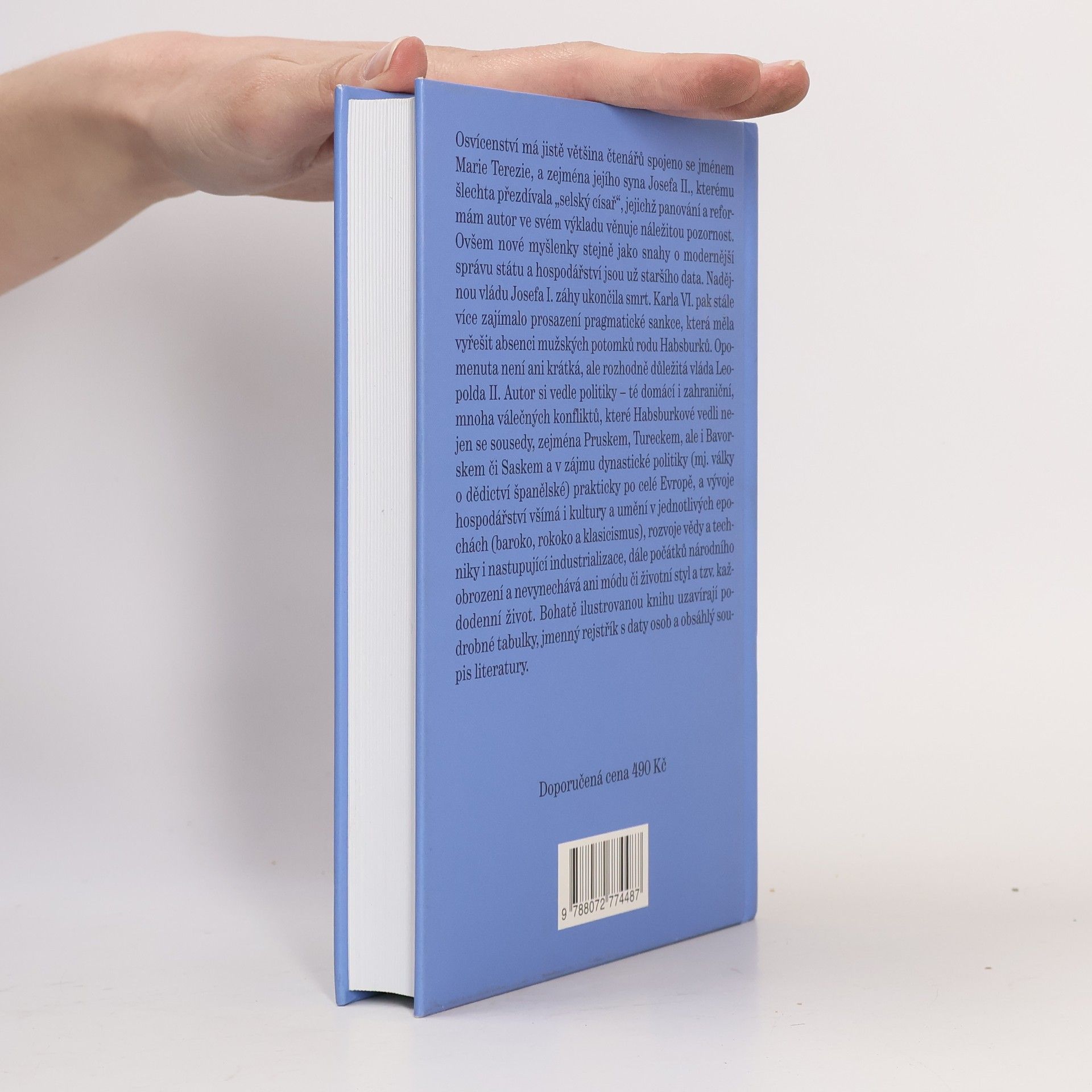 Věk absolutismu, osvícenství, paruk a třírohých klobouků. Osvícenství má většina čtenářů spojeno s Marií Terezií, a zejména jejím synem Josefem II., jejichž panování a reformám text věnuje náležitou pozornost. Ovšem nové myšlenky i snahy o modernější správu státu a hospodářství jsou staršího data. Nadějnou vládu Josefa I. záhy ukončila smrt, Karla VI. pak zajímalo prosazení pragmatické sankce. Opomenuta není ani krátká, ale důležitá vláda Leopolda II. Autor si vedle politiky, válek a hospodářství všímá i kultury a umění baroka, rokoka a klasicismu, rozvoje vědy a techniky i nastupující industrializace a počátků národního obrození, módy a životního stylu.