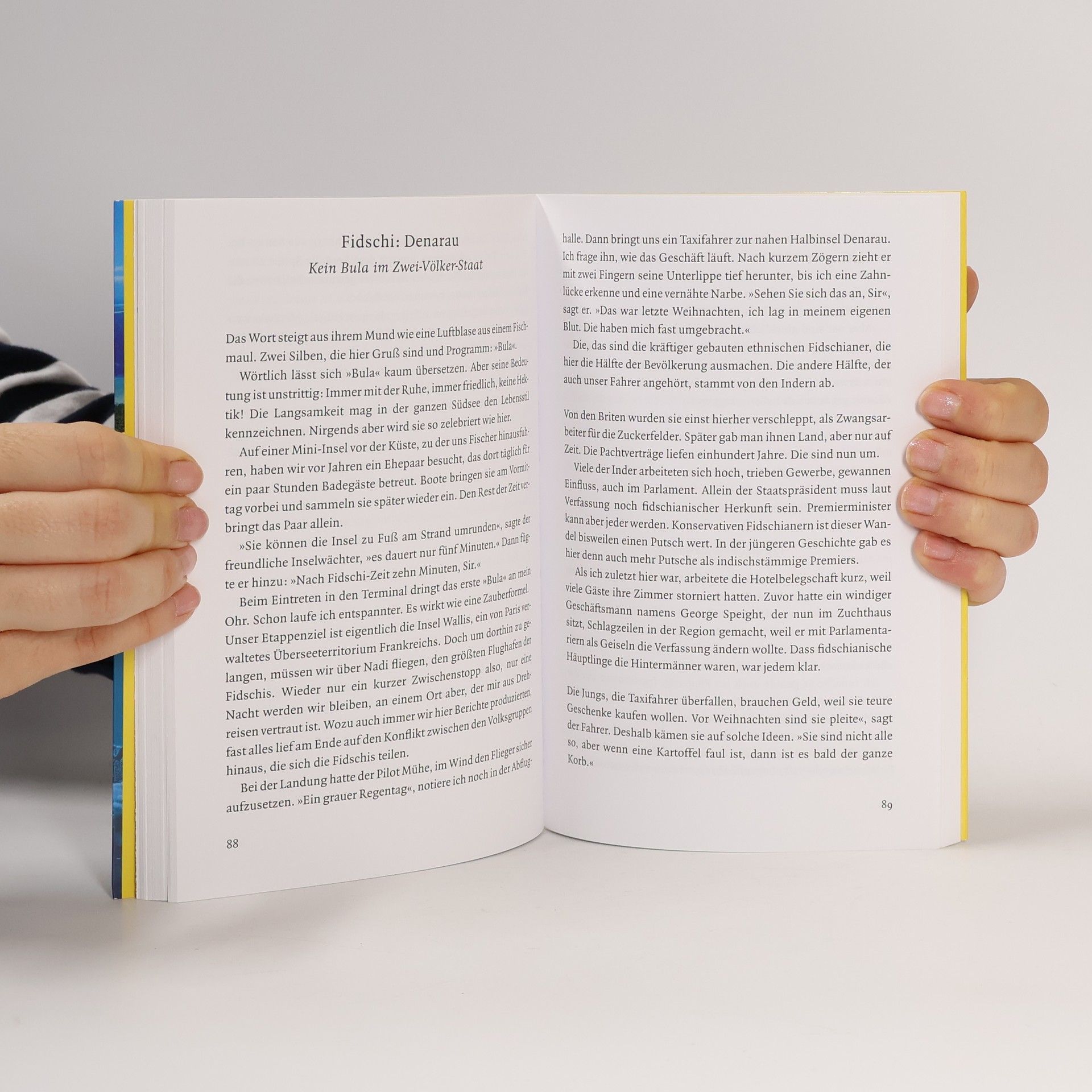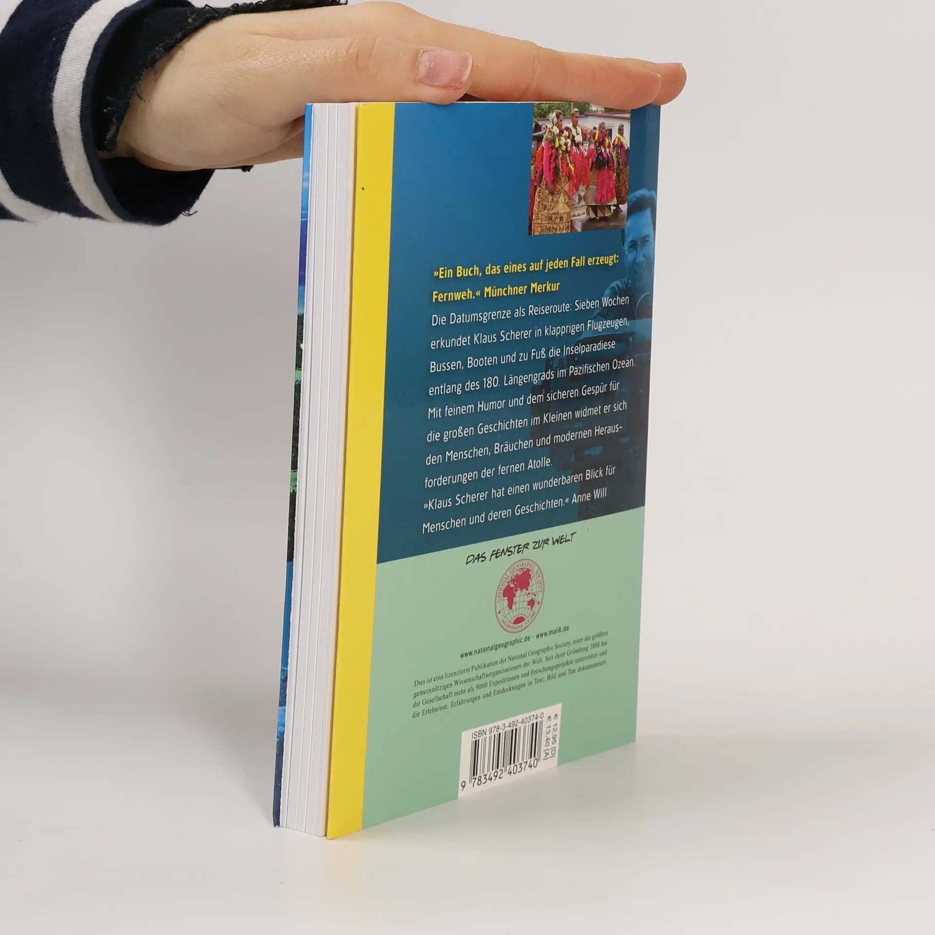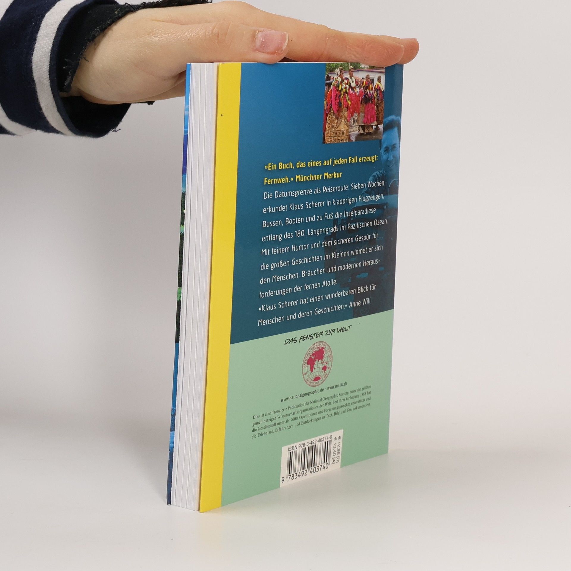 Die Datumsgrenze als Reiseroute: Sieben Wochen durchquert Klaus Scherer in klapprigen Flugzeugen, Bussen, Booten und zu Fuß die Inselparadiese entlang des 180. Längengrads im Pazifischen Ozean. Neben dem Reiz, mit einem Schritt den Tag noch einmal neu beginnen zu können, sind es die Bräuche und 'modernen' Herausforderungen der fernen Atolle, die den preisgekrönten Reporter faszinieren. Im französischen Südseeprotektorat Wallis trifft er einen König, den sein Volk seit vierzig Jahren mit gestopften Schweinen feiert. Auf den Cookinseln besucht er Dörfer, denen die Bewohner die Namen 'Germany' oder 'Japan' gaben – um sich in Sportwettkämpfen bedeutender zu fühlen. Auch die Unterwasserwelt erkundet Scherer, umgeben von Giftschlangen und Buckelwalen. Eine exzellente Reisereportage – stimmungsvoll und weise.