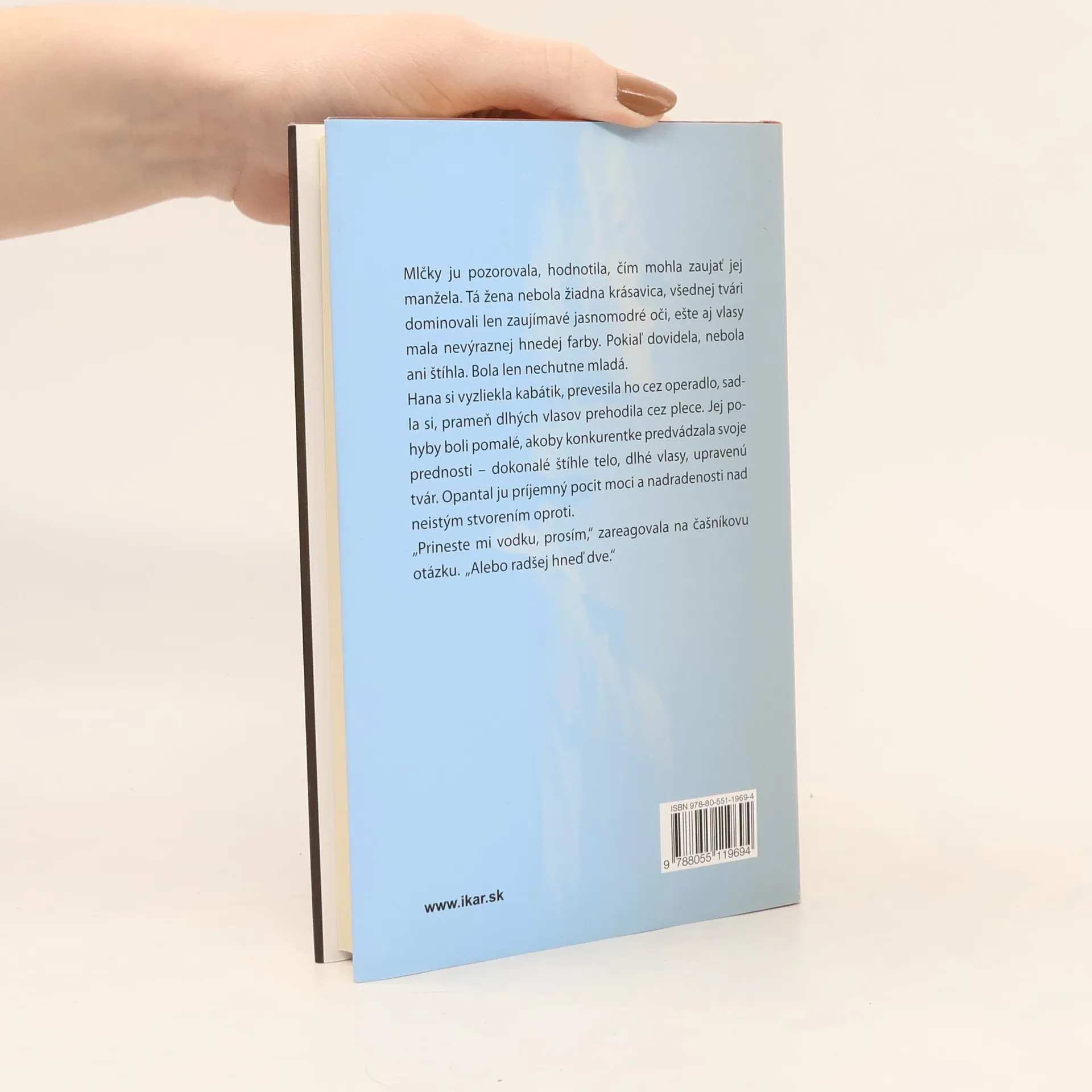 Atraktívna učiteľka Hanka, matka dvoch dcér, sa ocitne v nemocnici. Spočiatku dlho pátra v pamäti, kým si pospomína, ako a prečo sa ta dostala. Pred očami čitateľov sa odvíja príbeh plný lásky, sklamania i dramatických zvratov. Čo Hanku prinútilo, aby sa po rozvode hneď vrhla do nového vzťahu? Čo pomôže, keď sa nám zdá, že všetko okolo nás sa rúca, borí a niet sa čoho zachytiť? Ako vyjsť zo situácie, keď vám prestávajú rozumieť aj tí najbližší? Hanka svoj boj o seba samu napokon vyhráva a aj lásku nachádza tam, kde ju už nečakala...