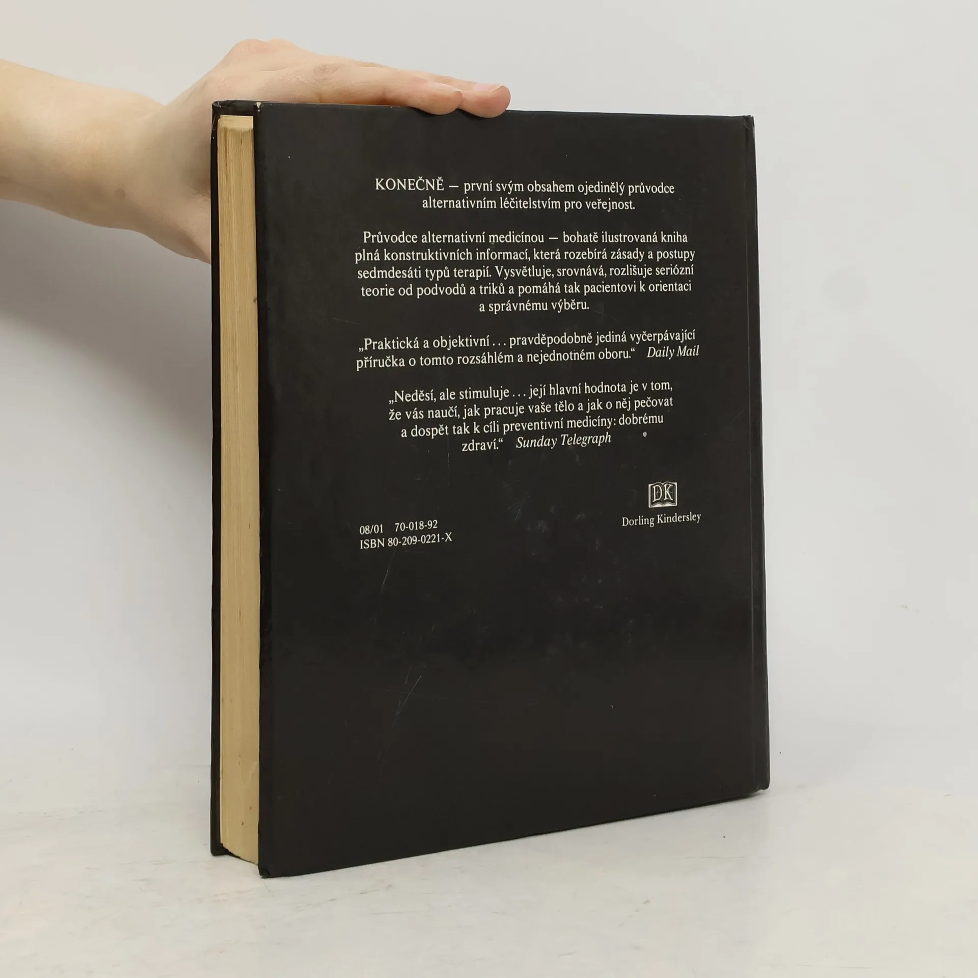 Bohatě ilustrovaná kniha plná konstruktivních informací, která rozebírá zásady a postupy sedmdesáti typů terapií. Vysvětluje, srovnává, rozlišuje seriózní teorie od podvodů a triků a pomáhá tak pacientovi k orientaci a správnému výběru. Naleznete zde informace o léčebných metodách jako je paranormální terapie, přírodní léčení, léčení bylinkami, orientální terapie, naturopatie, reflexologie atd.