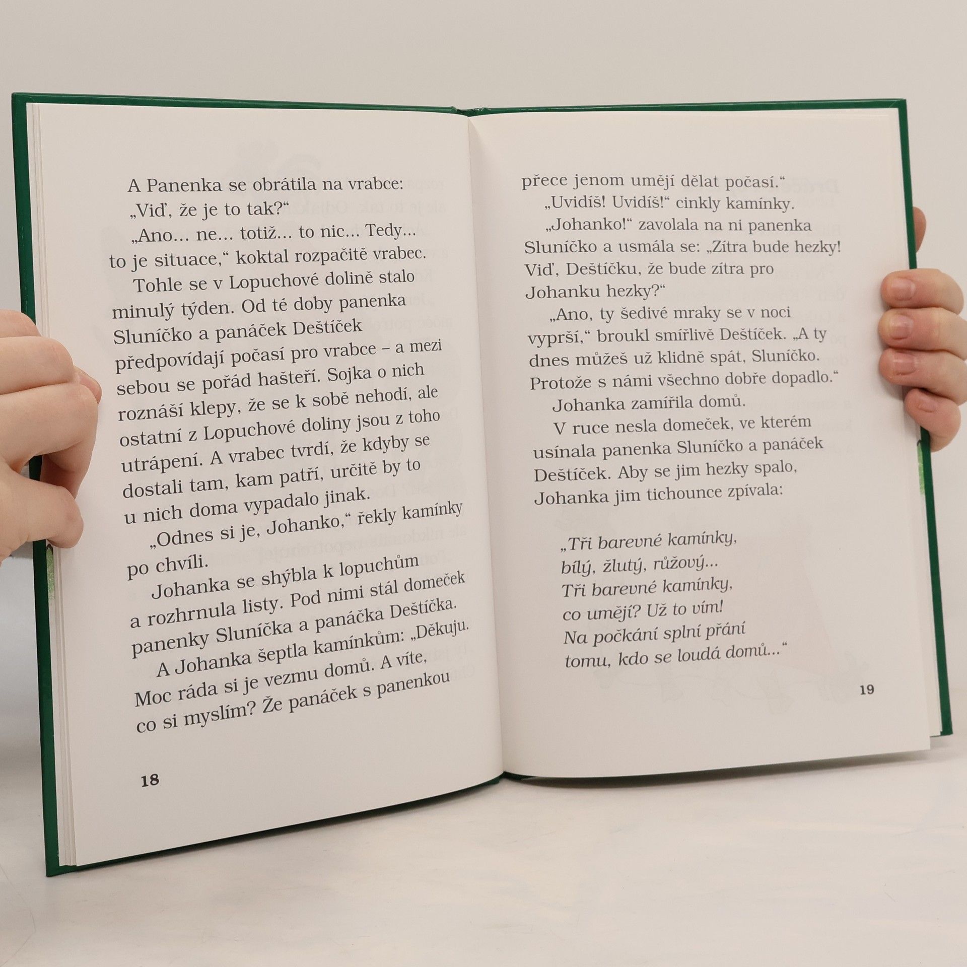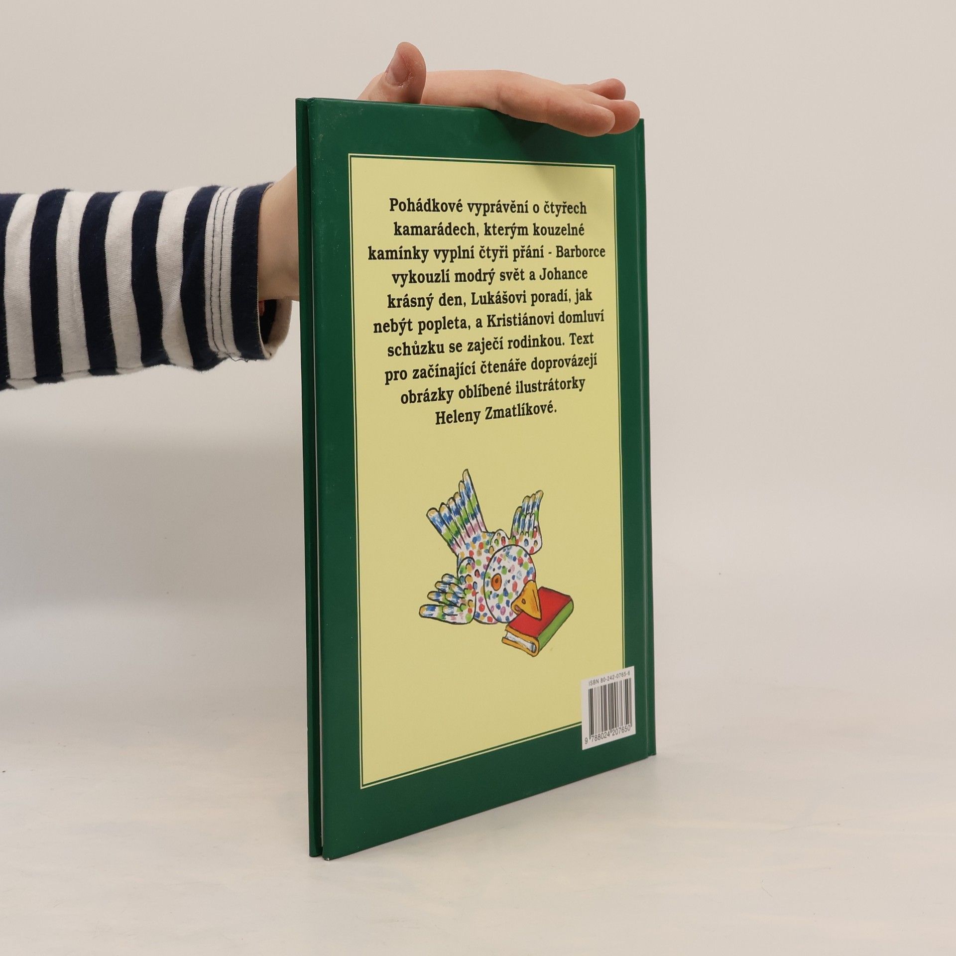 Pohádkové vyprávění o čtyřech kamarádech, kterým kouzelné kamínky vyplní čtyři přání - Barborce vykouzlí modrý svět a Johance krásný den, Lukášovi poradí, jak nebýt popleta, a Kristiánovi domluví schůzku se zaječí rodinkou. Text pro začínající čtenáře doprovázejí obrázky oblíbené ilustrátorky Heleny Zmatlíkové.