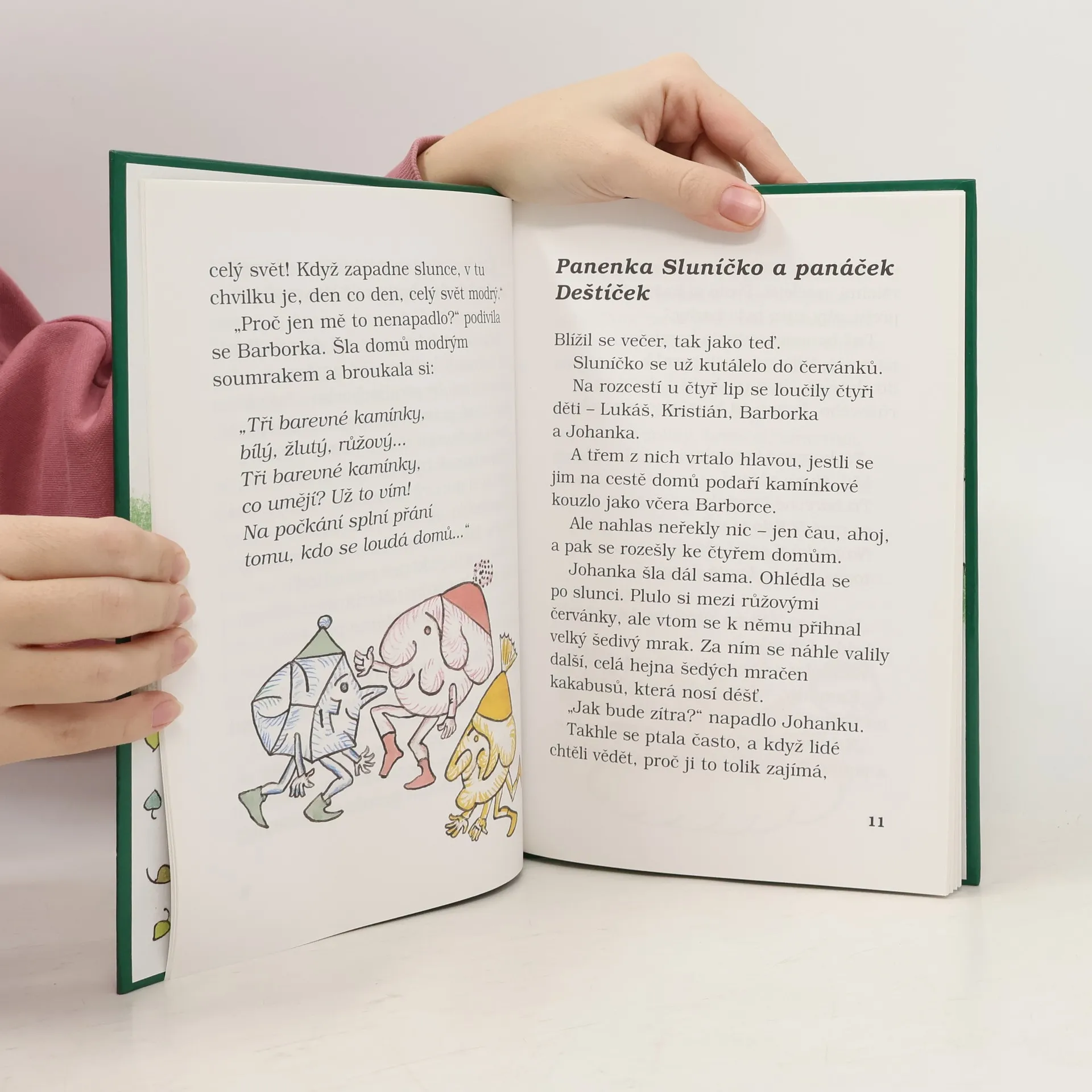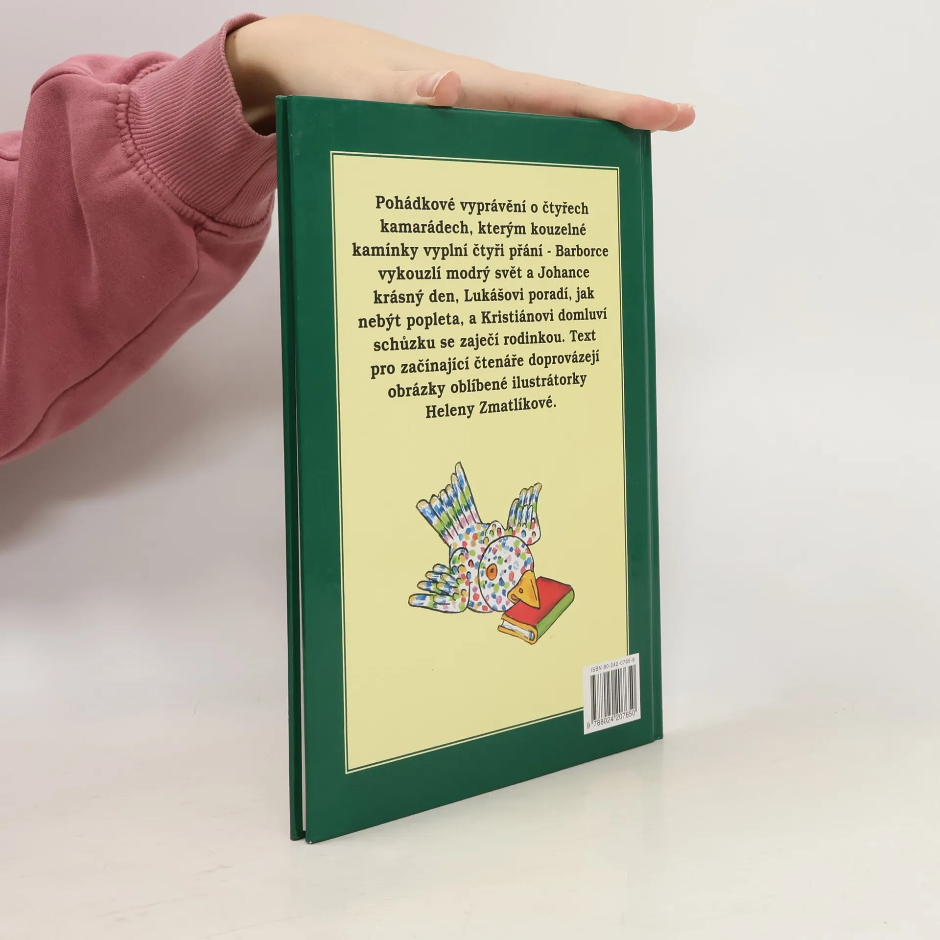 Pohádkové vyprávění o čtyřech kamarádech, kterým kouzelné kamínky vyplní čtyři přání - Barborce vykouzlí modrý svět a Johance krásný den, Lukášovi poradí, jak nebýt popleta, a Kristiánovi domluví schůzku se zaječí rodinkou. Text pro začínající čtenáře doprovázejí obrázky oblíbené ilustrátorky Heleny Zmatlíkové.