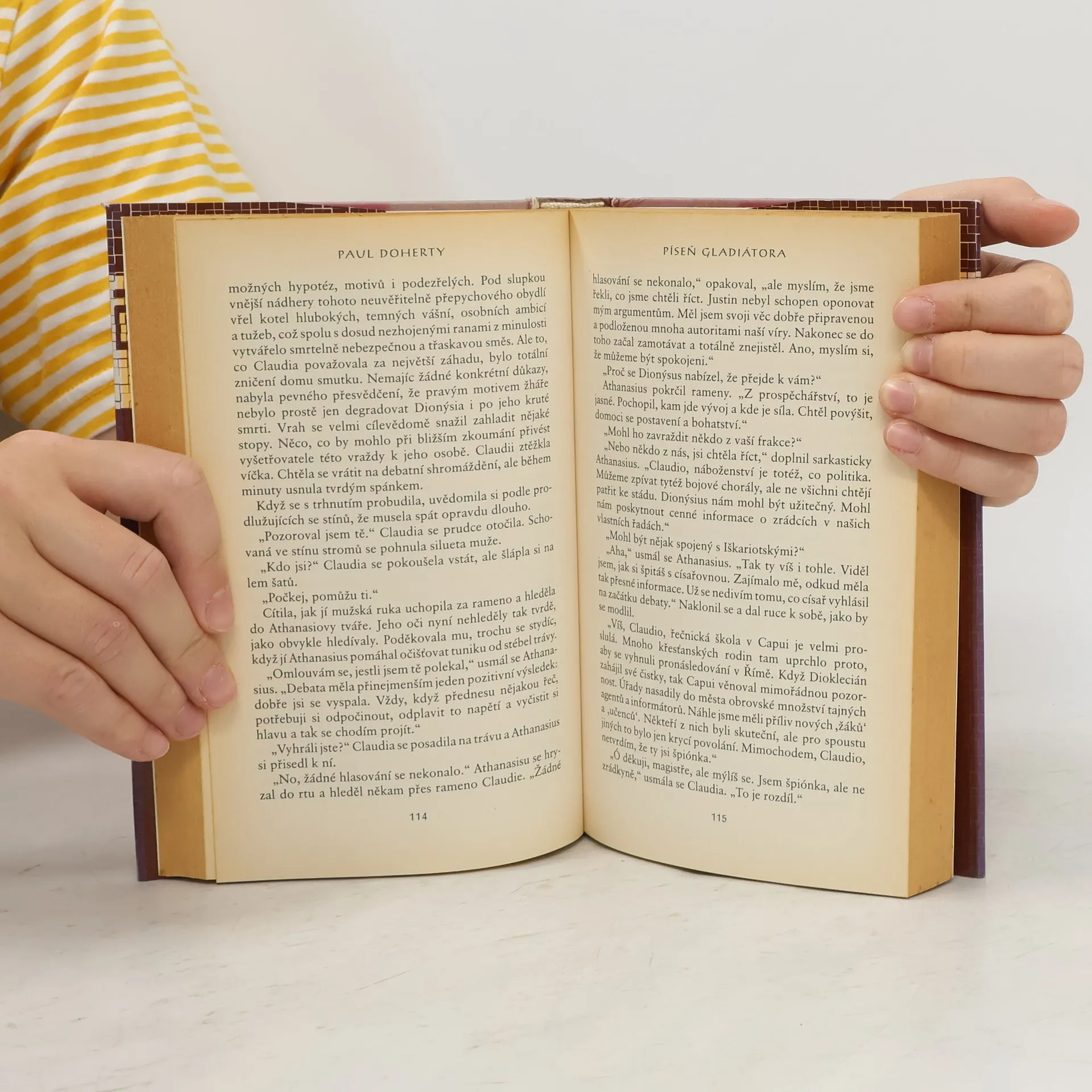 Píše se rok 313 našeho letopočtu a my se ocitáme v Římě, kde se císař Konstantin snaží zavést novou víru: křesťanství. A přestože má za zády podporu své panovačné matky, Heleny, která by nejraději ovládala nejen jeho, ale i celou říši, není to pro něj nic snadného. Mnozí učenci dogmatům nezvyklé víry tvrdě odporují, a tak je císař sezve do svého paláce, aby tam sporné momenty vyřešili ve společné debatě. Místo usmíření však přijde smrt! Je jasné, že do císařského paláce se vloudil vrah. Kdo ale vraždil a proč? Helena se pokusí zjistit pravdu za pomoci Claudie, dívky, která kromě toho, že je mladá a krásná, je i její nejschopnější vyzvědačka. Claudii pátrání zavede do světa gladiátorů, do světa krve a násilí, v němž kdosi neviditelný tahá za nitky lidských osudů. Odvážná dívka se tak ocitá v ohrožení života, ale ani její srdce nezůstane bez následků… Barvité líčení uliček, paláců, krčem i arény antického Říma, jímž je autor tohoto románu proslulý, zavede čtenáře přímo proti proudu času a rozvine mu před očima pestrý kaleidoskop neuvěřitelných událostí.
