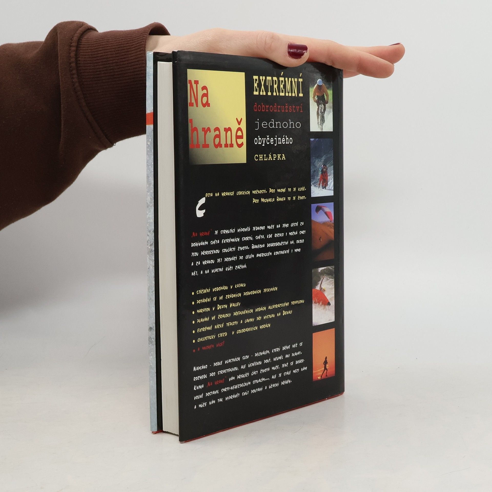 Na hraně, Opravdové kouzlo extremních sportů, je vzrušující příběh Baneových dobrodružství, ve kterých se svou účastí na nejnebezpečnějších sportovních událostech světa vydává na hranice svých možností. Bane doslova riskuje život a mnohdy jen stěží vyvázne se zdravou kůží, když při svých cestách po americkém kontinentu, ale i na opačné straně zeměkoule rozhodne zautočit na třináct extremních sportů, uvedených v jeho Seznamu. Od maratonu v nelidských teplotách v Death Valley, přes sjíždění peřejí v Hondurasu, vodopádu na Novém Zélandě, potapění se v průzračných podvoních jeskyních na Floridě, cyklistický sjezd v colorádských horách rychlostí 70km za hodinu až po první část alcatrazského triatlonu - plavání ve žraloky zamořených vodách. Baneova pouť zachycuje vše od úplného vyčerpání, přes nadšení a strach, které jej doprovází na cestě ke hranici fizických i psychických možností člověka a zpět. Jednou si Bone položí otázku : Jaké to asi je, dojít až na úplnou hranu a podivát se za ní ? V Této napínavé knize nám nabízí odpověď. (oficialní text českého vydání)