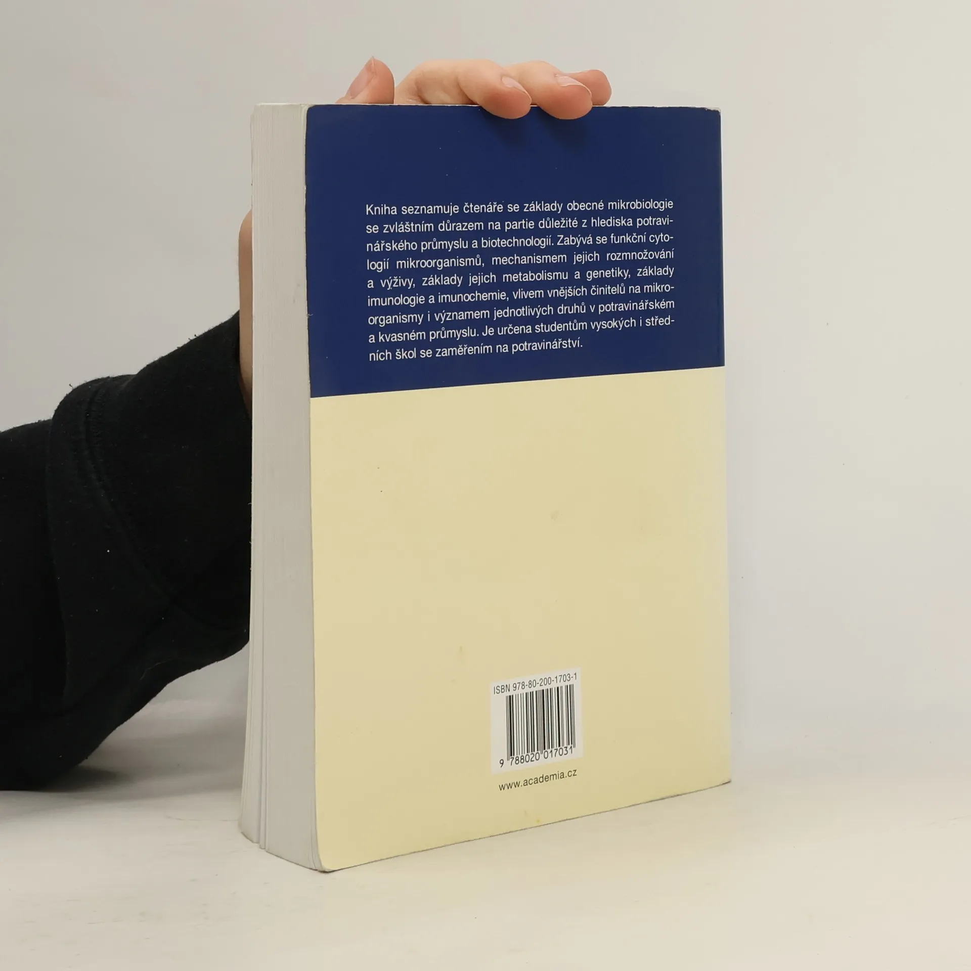 Kniha seznamuje čtenáře se základy obecné mikrobiologie s důrazem na partie důležité z hlediska potravinářského průmyslu a biotechnologií. Zabývá se funkční cytologií mikroorganismů, mechanismem jejich rozmnožování a výživy, základy jejich metabolismu a genetiky, základy imunologie a imunochemie, vlivem vnějších činitelů na mikroorganismy i významem jednotlivých druhů v potravinářském a kvasném průmyslu. Publikace je určena studentům vysokých i středních škol se zaměřením na potravinářství.