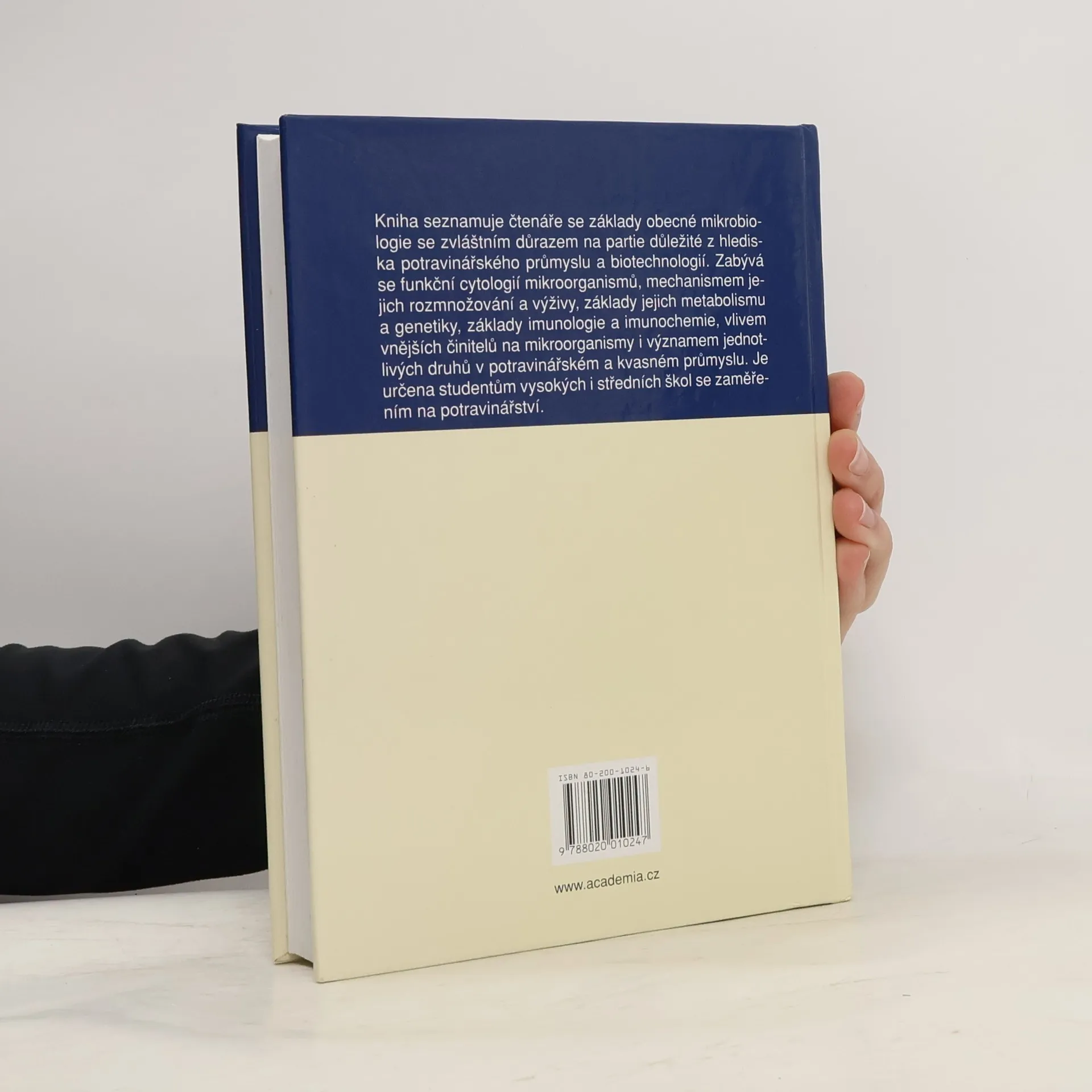 Kniha seznamuje čtenáře se základy obecné mikrobiologie s důrazem na partie důležité z hlediska potravinářského průmyslu a biotechnologií. Zabývá se funkční cytologií mikroorganismů, mechanismem jejich rozmnožování a výživy, základy jejich metabolismu a genetiky, základy imunologie a imunochemie, vlivem vnějších činitelů na mikroorganismy i významem jednotlivých druhů v potravinářském a kvasném průmyslu. Publikace je určena studentům vysokých i středních škol se zaměřením na potravinářství.