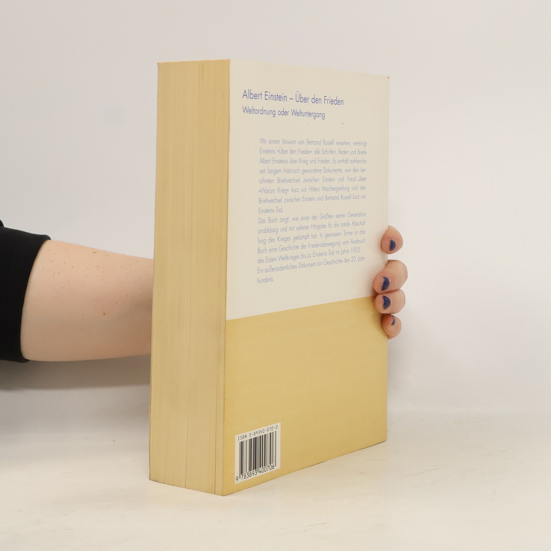 „Über den Frieden“ vereinigt alle Schriften, Reden und Briefe Albert Einsteins über Krieg und Frieden. Es enthält viele bedeutende, historische Dokumente, wie den berühmten Briefwechsel, der zwischen Einstein und Freud über „Warum Krieg“ kurz vor Hitlers Machtergreifung stattfand, und den Briefwechsel zwischen Einstein und Bertrand Russell kurz vor Einsteins Tod.