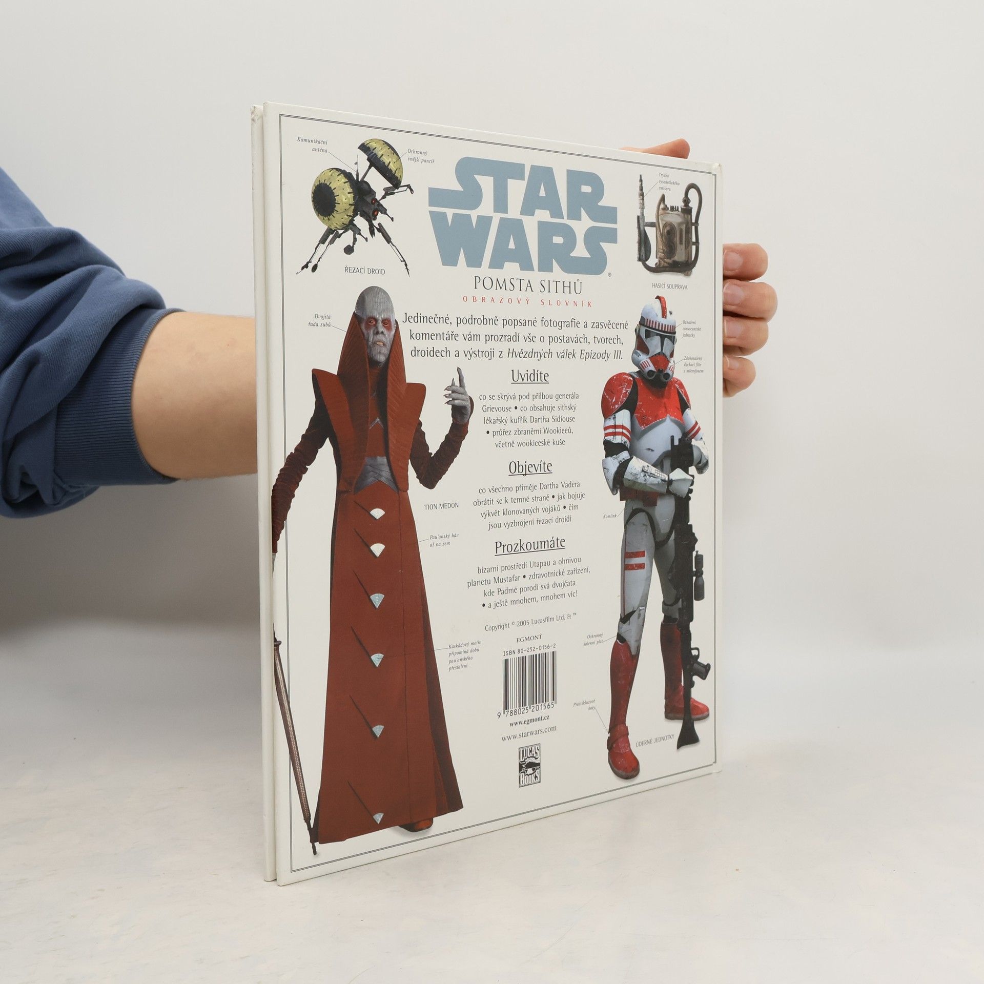 Jedinečné, podrobně popsané fotografie a zasvěcené komentáře vám prozradí vše o postavách, tvorech, droidech a výstroji ze Star Wars: Epizody III. Uvidíte: •co se skrývá pod přilbou generála Grievouse •co obsahuje sithský lékařský kufřík Darha Sidiouse •průřez zbraněmi Wookieeů, včetně wookieeské kuše Objevíte: •co všechno přiměje Dartha Vadera obrátit se k temné straně •jak bojuje výkvět klonovaných vojáků •čím jsou vyzbrojeni řezací droidi Prozkoumáte: •bizarní prostředí Utapau a ohnivou planetu Mustafar •zdravotnické zařízení, kde Padmé porodí svá dvojčata •a ještě mnohme, mnohem víc!