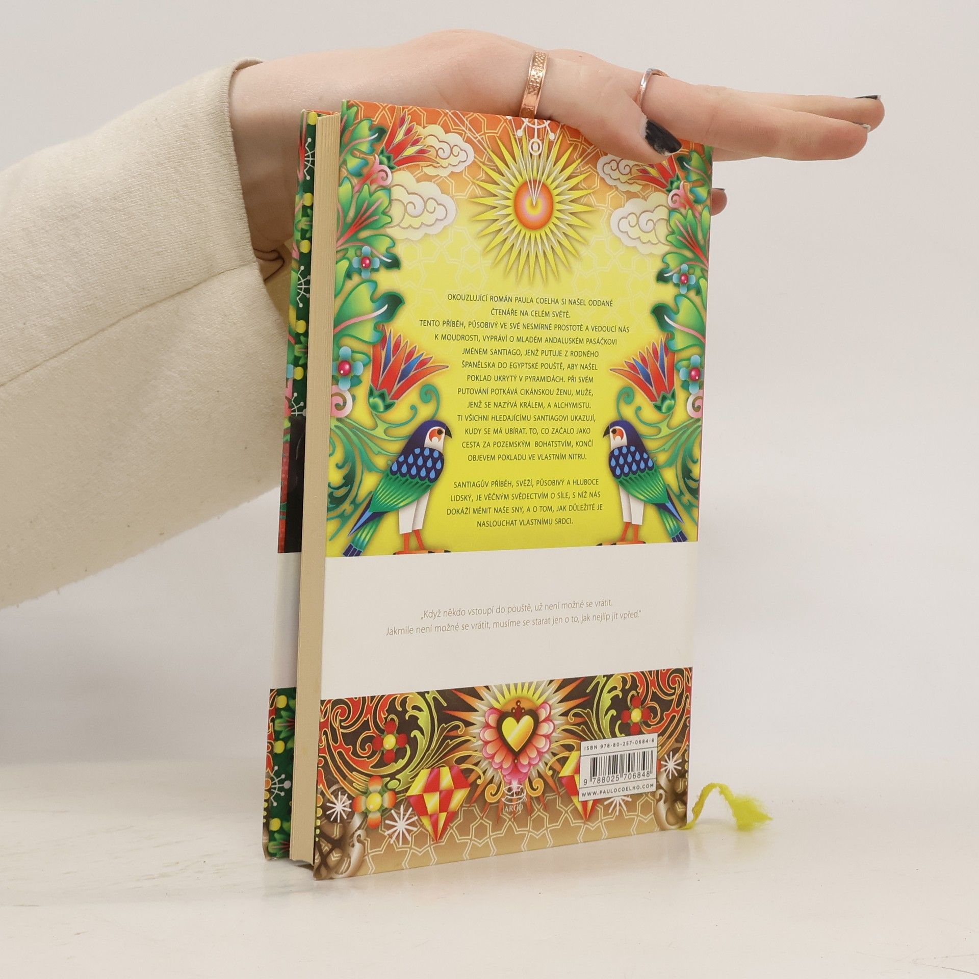Román Alchymista – největší brazilský bestseller všech dob – byl dosud přeložen do 34 jazyků a prodalo se ho na 10 milionů výtisků. Takřka pohádkové vyprávění o cestě španělského pastýře za zakopaným pokladem, vycházející z příběhu o splněném snu ze sbírky Tisíc a jedna noc, je zároveň výzvou k naplnění vlastního osudu i poznáním posvátnosti světa, v němž žijeme. Na cestě za oním dvojím pokladem, plné zkoušek a důležitých setkání, je třeba dbát všech znamení a s neustálou trpělivostí a odvahou (jako alchymista sledující proměnu obyčejného kovu ve zlato) přetvořit samu svou osobnost.