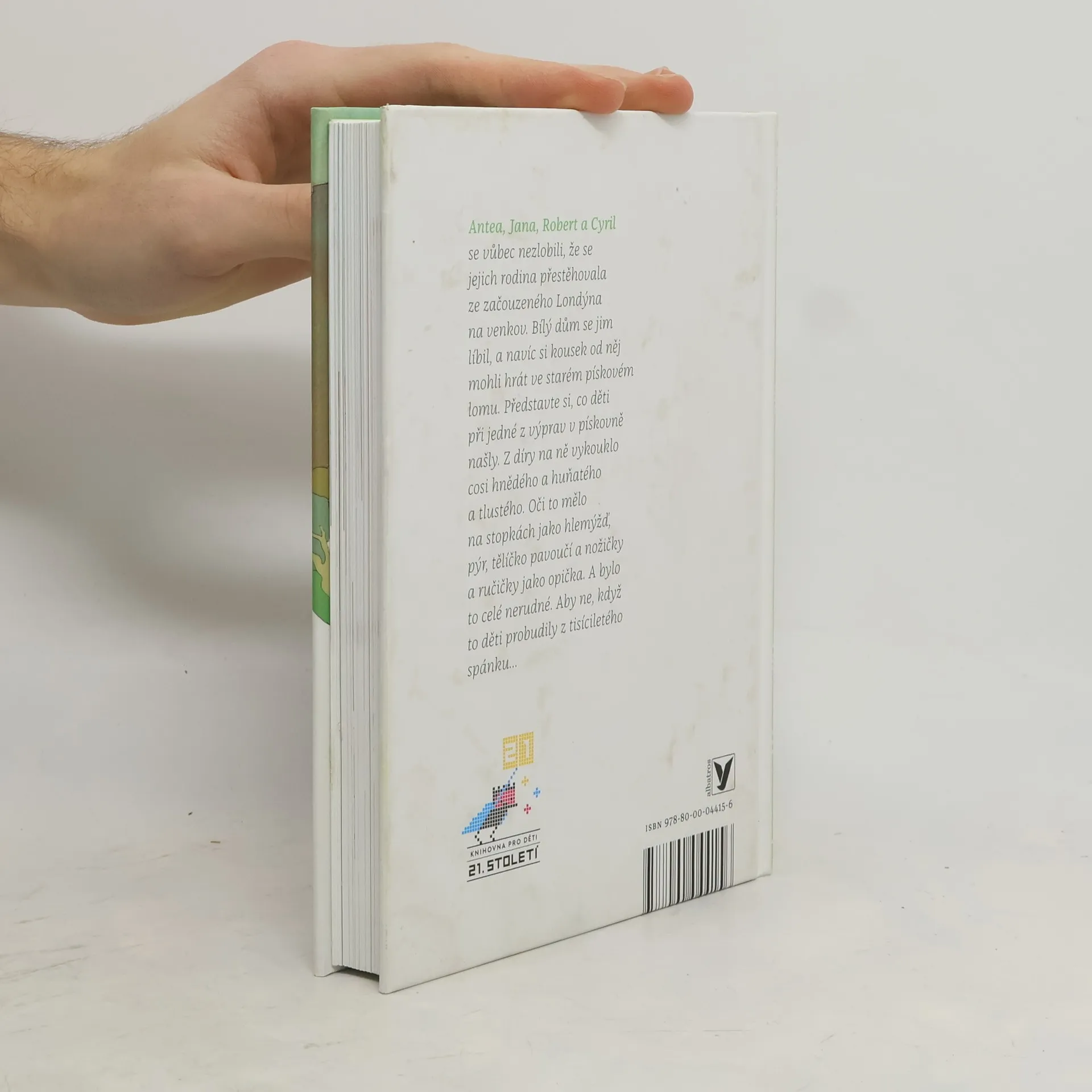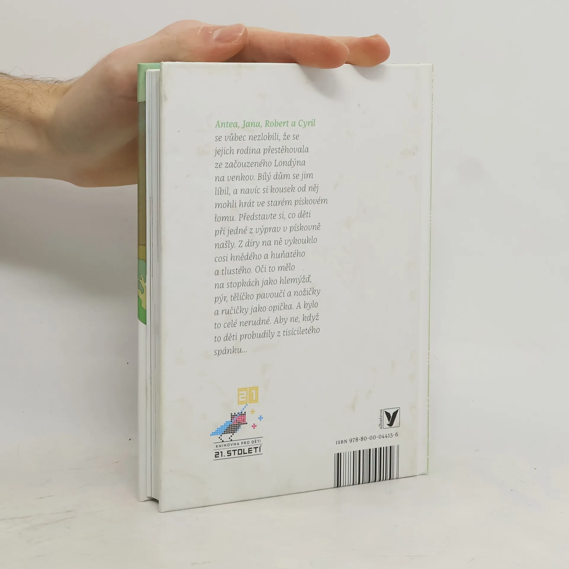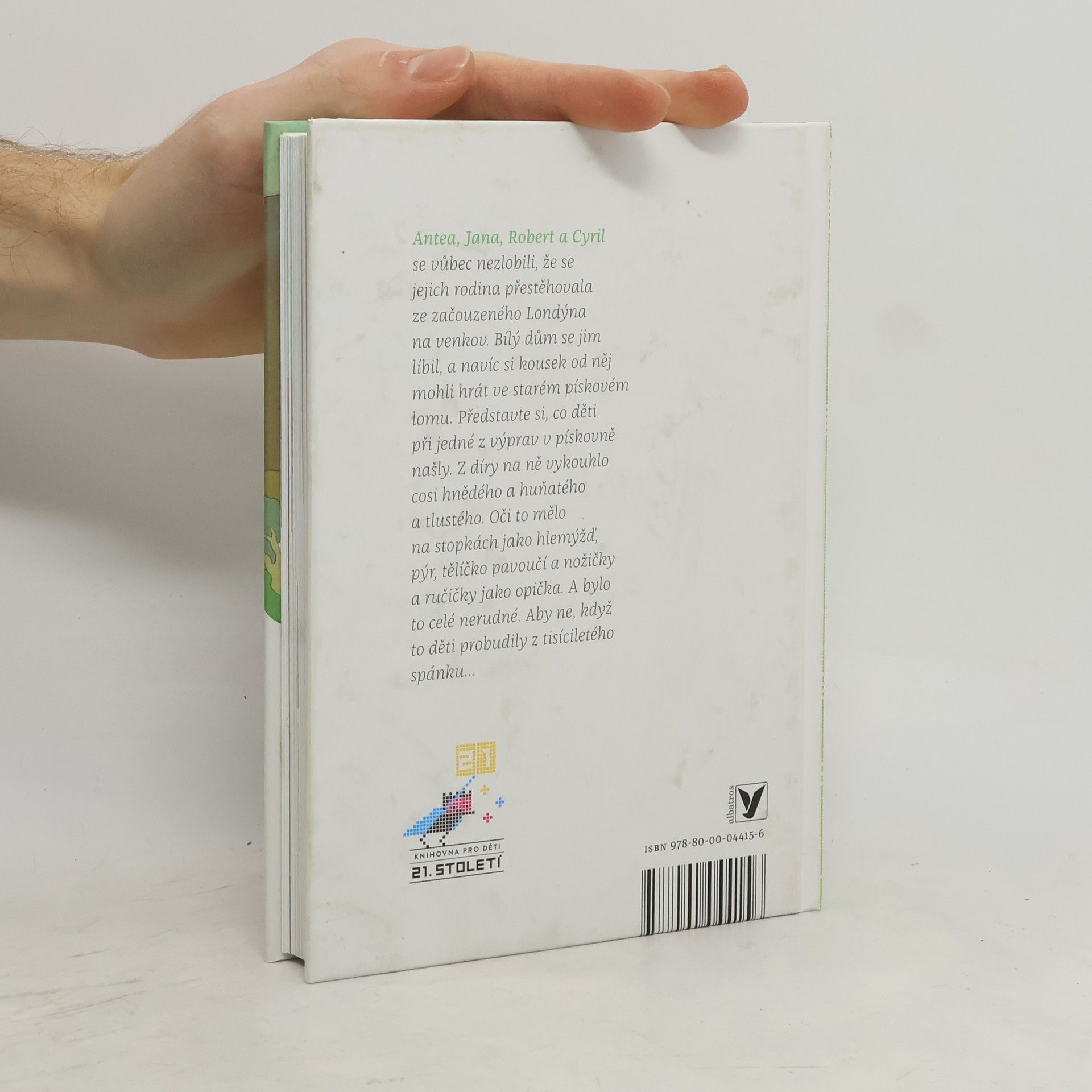 Antea, Jana, Robert a Cyril se vůbec nehněvali, že se jejich rodina přestěhovala ze začouzeného Londýna na venkov. Bílý dům se jim líbil, a navíc si kousek od něj mohli hrát ve starém pískovém lomu. Dokonce jim nevadilo ani to, že s sebou všude musí brát brášku Mrně. Představte si, co děti při jedné z výprav v pískovně našly. Z díry na ně vykouklo cosi něco hnědého a huňatého a tlustého. Oči to mělo na stopkách jako hlemýžď, uši jako netopýr, tělíčko pavoučí a nožičky a ručičky jako opička. Srst se tomu ježila jako kočce, když se chystal k boji. Aby ne, když ho děti probudily z tisíciletého spánku...