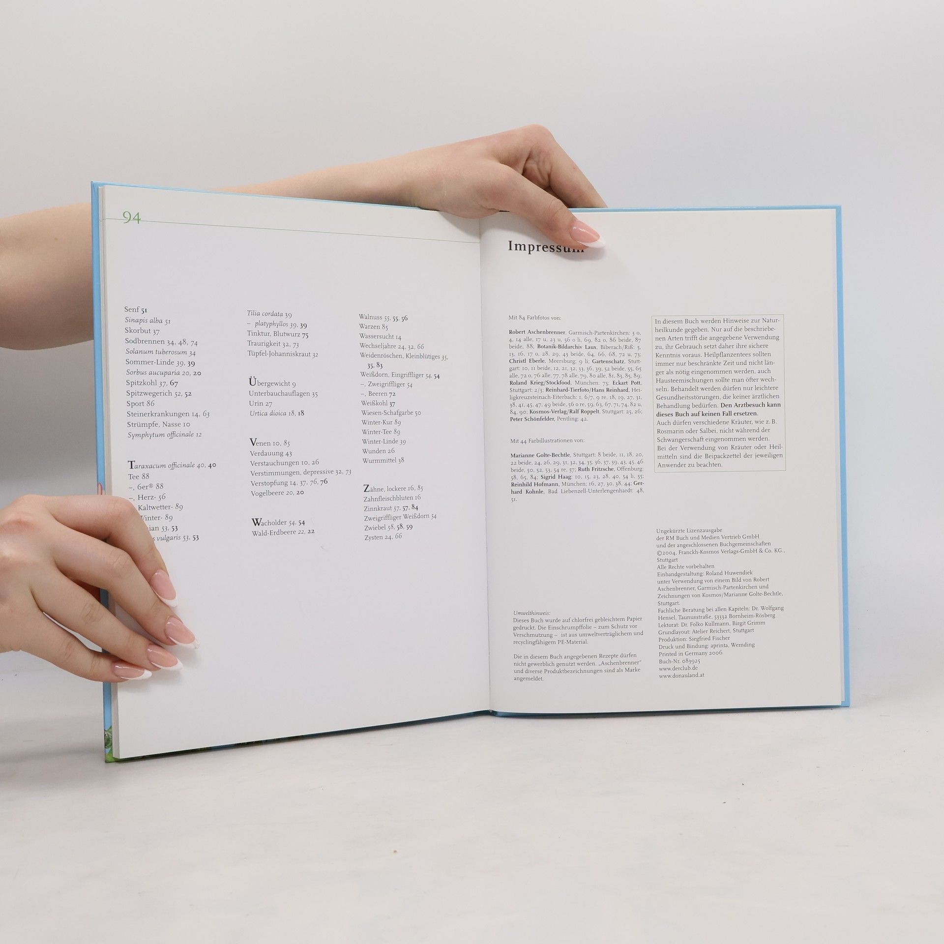 „Meine Mittel helfen langsam, aber dauerhaft. Sie können keine Wunder bewirken. Aber aus meiner langjährigen Erfahrung weiß ich, dass die Kräuter ihre Wirkung entfalten, wenn Sie sich selbst und ihre Beschwerden ernst nehmen und sich mit Ruhe und Gottvertrauen auf ihre Genesung einstellen. (...) Sie selbst können vieles tun, dass Sie wieder gesund werden und das zeitlebens auch bleiben.“ Eva Aschenbrenner In ihrem neuen Buch „Die Kräuterapotheke Gottes“ hat die beliebte Kräuterfachfrau Eva Aschenbrenner all ihr Wissen über Heilkräuter aufgeschrieben. Im ersten Teil stellt die 80jährige speziell von ihr ausgewählte Pflanzen vor. Hier erfährt man, dass Äpfel Krankheiten fernhalten, Bärlauchschnaps gegen hohen Blutdruck hilft, Birkenwasser das Haar kräftigt, Blutwurz bei Durchfall und Zahnfleischbluten verwendet wird, Brennnessel das Gedächtnis fördert, Löwenzahnblüten einen heilkräftigen Honig ergeben, und vieles mehr über die heilende Wirkung von Kräutern.