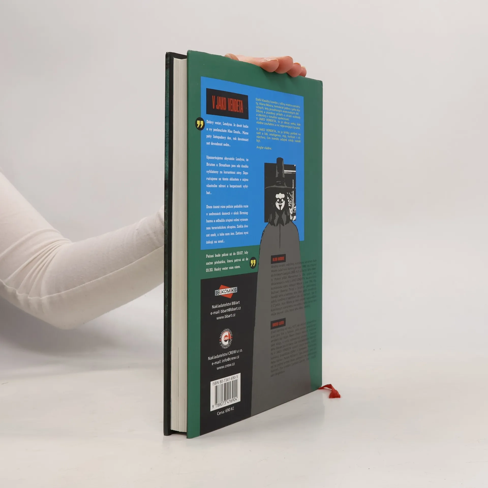Další klasický komiks z dílny Alana Moora, tentokrát jedno z jeho lety prověřených děl. Děsivý a působivý příběh o ztrátě svobody a identity v totalitní společnosti. V Jako Vendeta, to je obraz světa, kde vládne zoufalství a nic nepromíjející tyranie. V jako Vendeta, to je břitký pohled na svět a lidi, inteligence, vtip, hořkost i cit: všechno, čím komiks údajně nikdy neměl být.... celý text