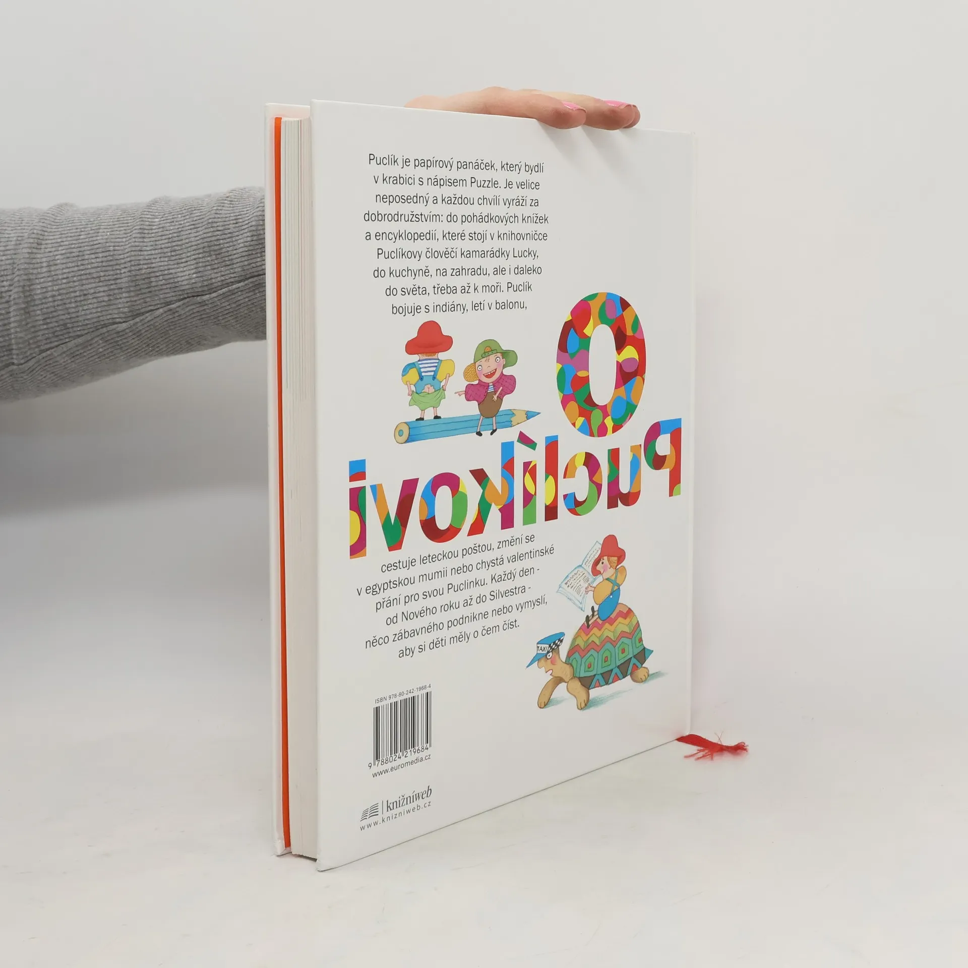 Puclík je papírový panáček, který bydlí v krabici s nápisem Puzzle. Je velice neposedný a každou chvílí vyráží za dobrodružstvím: do pohádkových knížek a encyklopedií, které stojí v knihovničce Puclíkovy člověčí kamarádky Lucky, do kuchyně, na zahradu, ale i daleko do světa, třeba až k moři. Puclík bojuje s indiány, letí v balonu, cestuje leteckou poštou, změní se v egyptskou mumii nebo chystá valentinské přání pro svou Puclinku. Každý den - od Nového roku až do Silvestra - něco zábavného podnikne nebo vymyslí, aby si děti měly o čem číst. 366 pohádek na každý den v roce. Ilustrace Marie Tichá