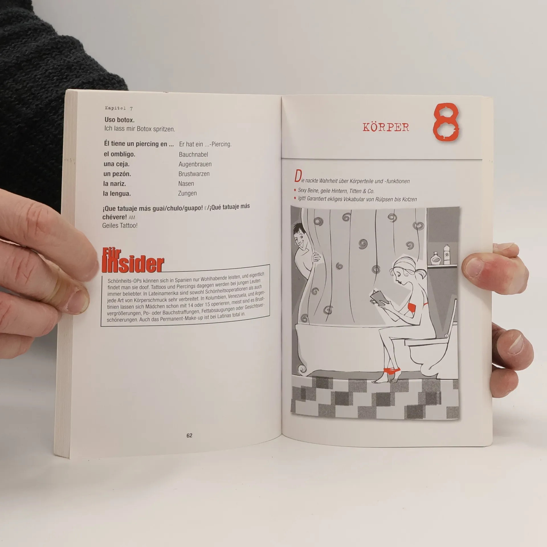 Spanier und Latinos zutexten? Kein Problem! Hier findest du 14 Kapitel mit scharfen Vokabeln, Sprüchen und Insidertipps. Vergiss dein Schulspanisch. wir kommen zur Sache!