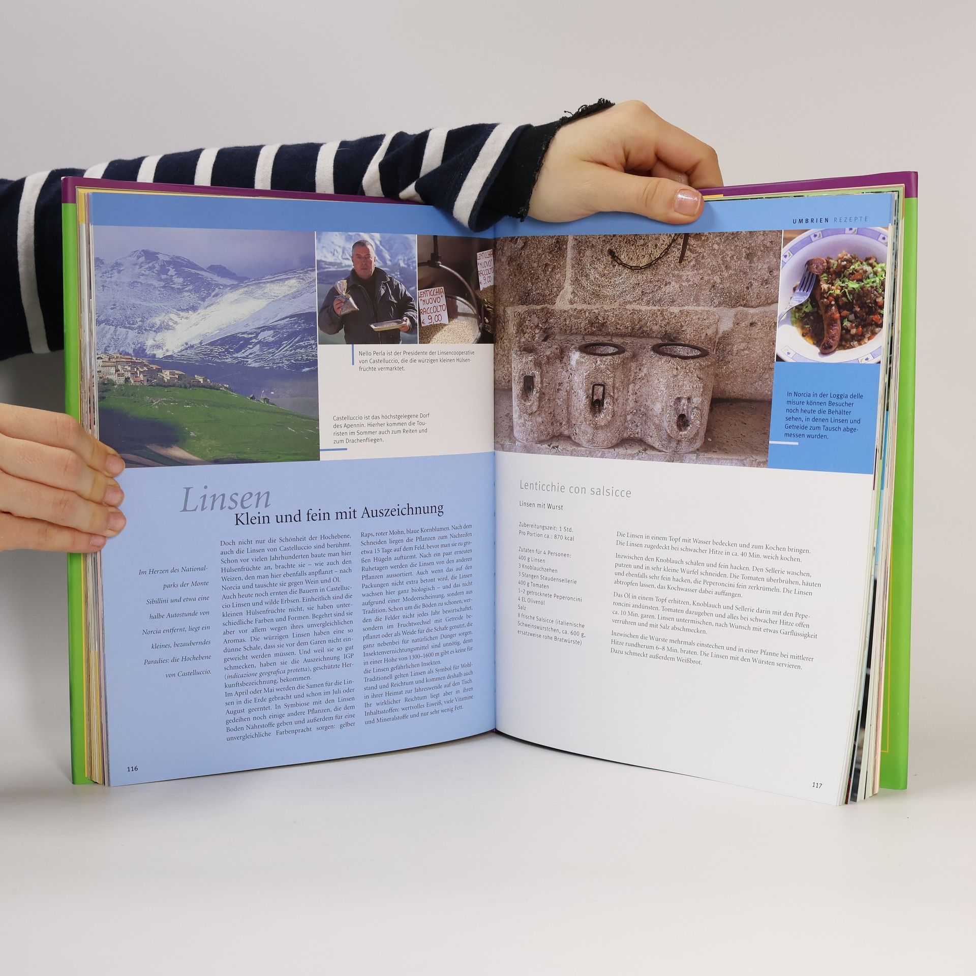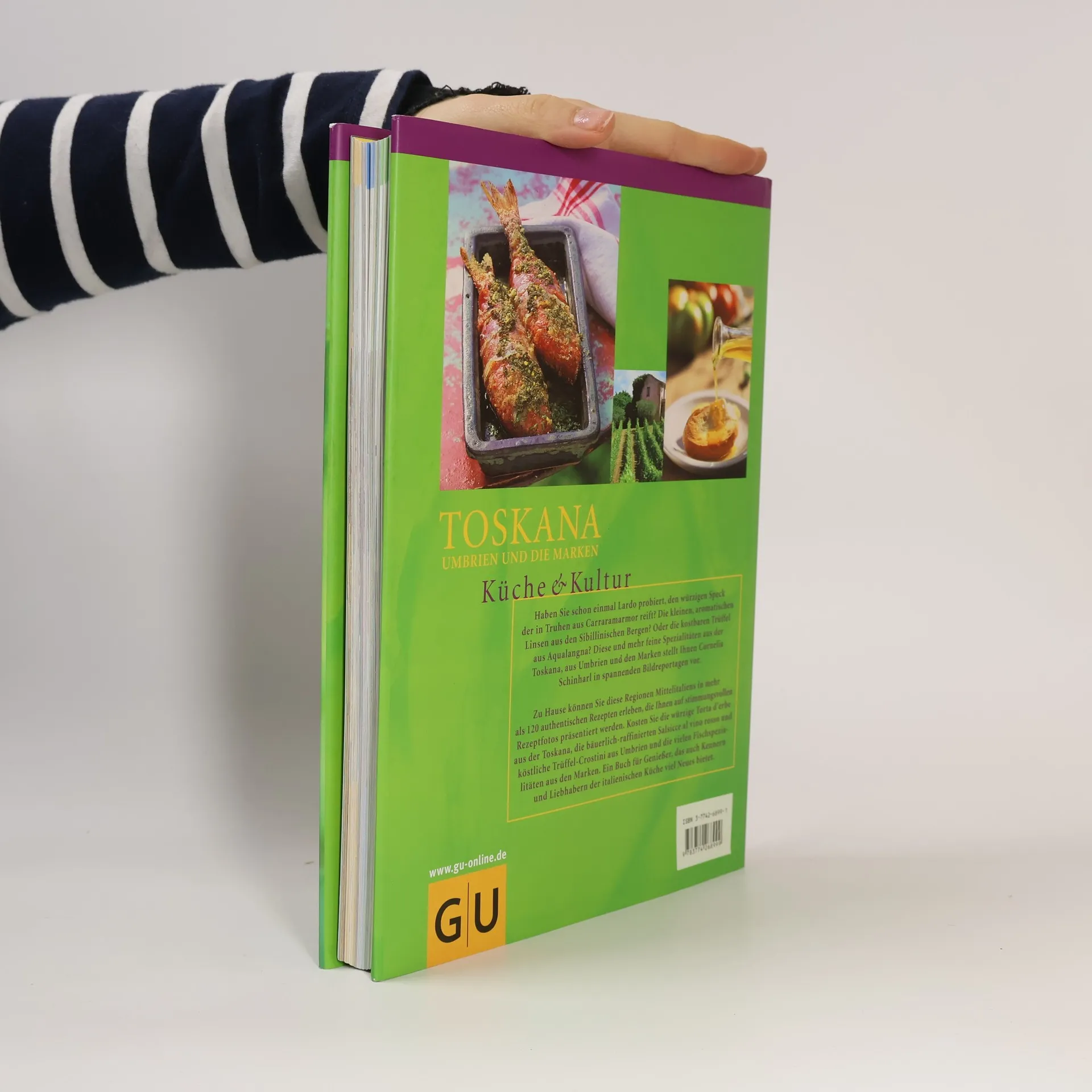 Cornelia Schinharl nimmt Sie mit auf eine Reise durch Mittelitalien. In Umbrien spürt sie Spezialitäten wie die Trüffel und die ganz besonderen Würste und Schinken auf, die die Schweine aus Norcia liefern und stellt die daraus bereiteten Spezialitäten wie Crostini umbri, Salsicce de vino rosso und Strangozzi alla norcina vor. Bei einem Ausflug ins Latium zeigt sie uns das begehrte Olio della Sabina und einige der zahlreichen kleinen Kaffeeröstereien. Die Marken mit ihrer einladenden Adriaküste bieten nicht nur feine Fischspezialitäten wie Risotto di mare, sie gelten auch als der Getreidespeicher Mittelitaliens.Zu Hause können Sie jetzt die Regionen Mittelitaliens durch mehr als 120 authentische, klassische und neue Rezepte kulinarisch erleben. Klassiker wie Crostini, Ribollita und Arista wechseln mit feinen Neuentwicklungen wie Ricottatörtchen mit Spargelsalat, Carpaccio vom Tunfisch und Olivenmarmelade und versprechen den vollen Genuss.