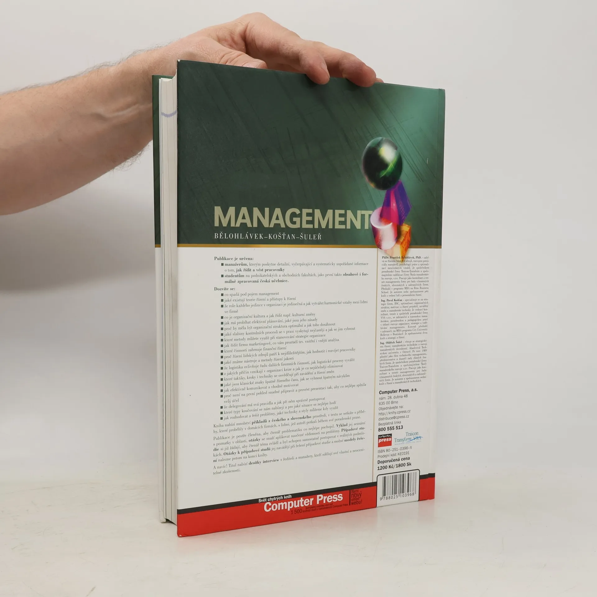 Každý manažer by měl ovládat dovednosti plánování, organizování, motivování, kontroly a odměňování, stejně jako komunikaci a argumentaci. Publikace se podrobně věnuje těmto oblastem, čerpajíc z domácího firemního prostředí s jeho specifiky. Je určena manažerům, kteří hledají detailní a systematické informace o řízení a vedení pracovníků, a studentům podnikatelských fakult jako první česká učebnice tohoto typu. Čtenáři se dozvědí, co zahrnuje management, jaké existují teorie a přístupy k řízení, a jak vytvářet harmonické vztahy v organizaci. Dále se naučí efektivní plánování, optimalizaci organizační struktury a vyhýbání se slabinám kontrolních procesů. Publikace také pokrývá strategické řízení, marketingové řízení, finanční řízení, a důležitost lidských zdrojů. Obsahuje nástroje a metody řízení kvality, logistiku, krizové řízení, a techniky pro efektivní komunikaci a motivaci. Kniha je bohatě ilustrována příklady a příběhy z českého a slovenského prostředí a zahrnuje případové studie, které pomáhají čtenářům aplikovat naučené poznatky. Na konci se nacházejí modely řešení a desítky interview s manažery, kteří sdílejí své cenné zkušenosti.