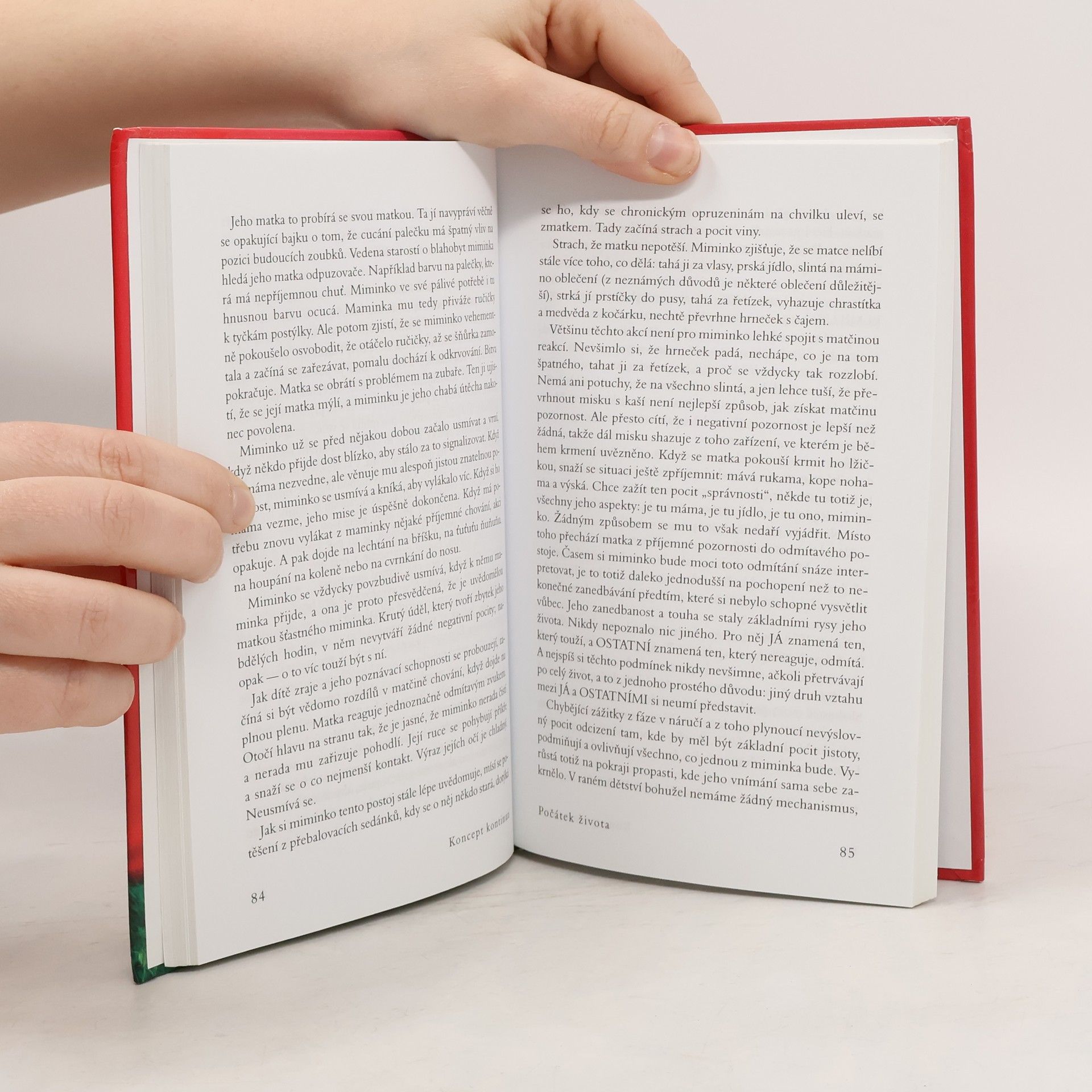 Autorka ve své světově proslulé knize odhaluje, proč jsou lidé žijící na Západě tak nespokojení a často nešťastní. Po několika expedicích mezi jihoamerické indiány rozpoznala, že tyto pocity mohou pramenit z neuspokojených potřeb miminek a malých dětí, které se na Západě snažíme vychovávat podle všemožných teorií, jen ne podle vlastní intuice a evolucí vytvořených jednoduchých pravidel a očekávání. V knize, kterou napsala již v r. 1975, velmi jasně a přesvědčivě vysvětluje, jak je potřeba zacházet s našimi nejmenšími, aby z nich vyrostly spokojené a samostatné děti a posléze dospělí lidé, kteří si nepotřebují „léčit“ své deprivace z dětství všemi možnými způsoby, počínaje drogovou závislostí a konče nezdravými partnerskými vztahy, a jsou schopni vést plnohodnotný život, jenž nebude naplněn věčnou nespokojeností a hledáním „něčeho“, co nalézt nelze. Našemu vlastnímu životu tak dává úplně nový rozměr a pomáhá lidem najít jednoduchou, a přitom málo předvídatelnou odpověď na často kladenou otázku – proč nejsme šťastní.