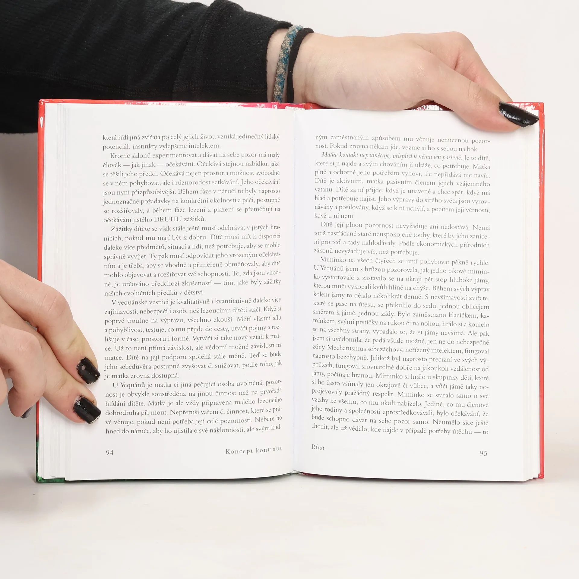 Autorka ve své světově proslulé knize odhaluje, proč jsou lidé žijící na Západě tak nespokojení a často nešťastní. Po několika expedicích mezi jihoamerické indiány rozpoznala, že tyto pocity mohou pramenit z neuspokojených potřeb miminek a malých dětí, které se na Západě snažíme vychovávat podle všemožných teorií, jen ne podle vlastní intuice a evolucí vytvořených jednoduchých pravidel a očekávání. V knize, kterou napsala již v r. 1975, velmi jasně a přesvědčivě vysvětluje, jak je potřeba zacházet s našimi nejmenšími, aby z nich vyrostly spokojené a samostatné děti a posléze dospělí lidé, kteří si nepotřebují „léčit“ své deprivace z dětství všemi možnými způsoby, počínaje drogovou závislostí a konče nezdravými partnerskými vztahy, a jsou schopni vést plnohodnotný život, jenž nebude naplněn věčnou nespokojeností a hledáním „něčeho“, co nalézt nelze. Našemu vlastnímu životu tak dává úplně nový rozměr a pomáhá lidem najít jednoduchou, a přitom málo předvídatelnou odpověď na často kladenou otázku – proč nejsme šťastní.