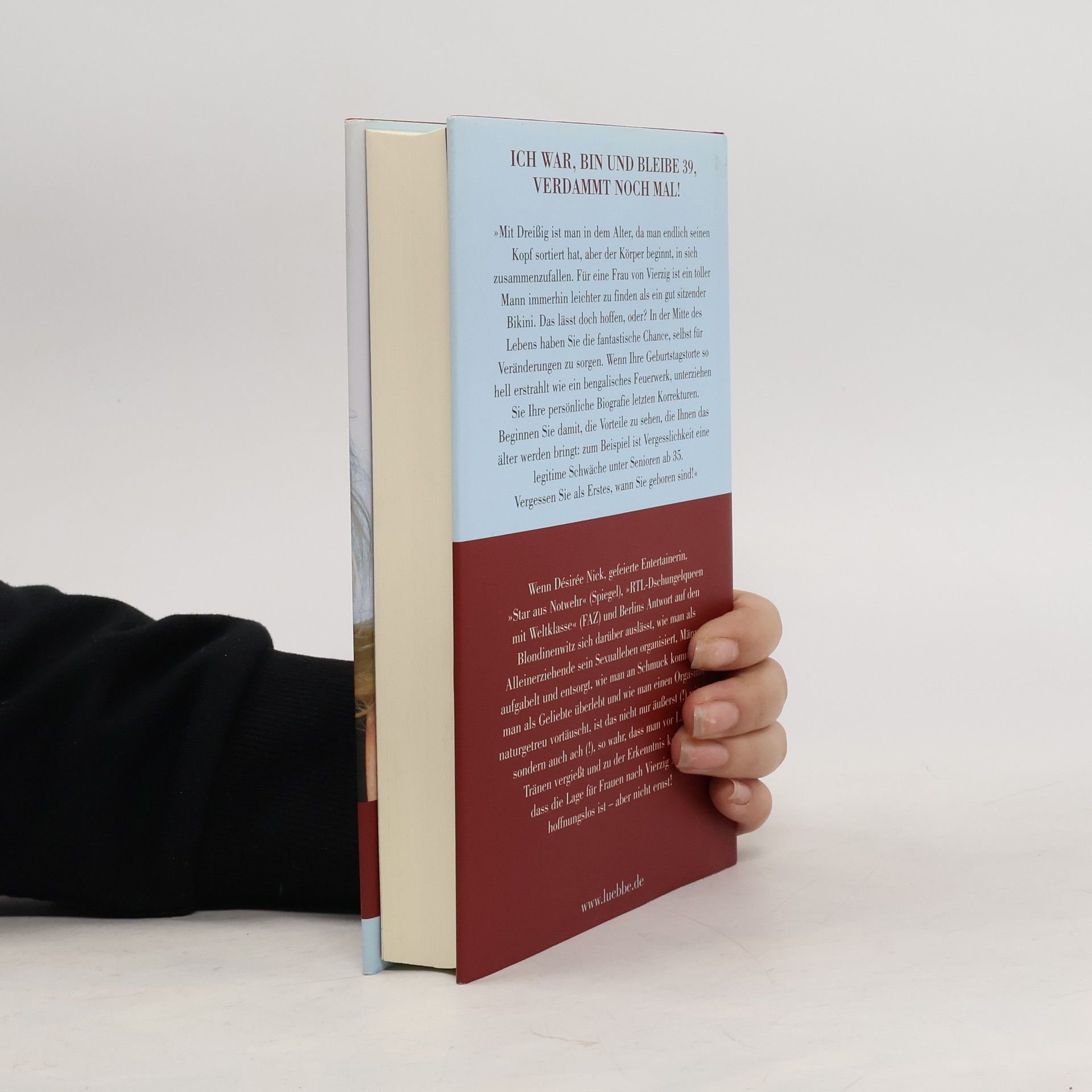 Ich war, bin und bleibe 39, verdammt noch mal! „Mit Dreißig ist man in dem Alter, da man endlich seinen Kopf sortiert hat, aber der Körper beginnt, in sich zusammenzufallen. Für eine Frau von Vierzig ist ein toller Mann immerhin leichter zu finden, als ein gut sitzender Bikini. Das lässt doch hoffen, oder? In der Mitte des Lebens haben Sie die fantastische Chance, selbst für Veränderungen zu sorgen. Wenn Ihre Geburtstagstorte so hell erstrahlt, wie ein bengalisches Feuerwerk, unterziehen Sie Ihre persönliche Biografie letzten Korrekturen. Beginnen Sie damit, die Vorteile zu sehen, die Ihnen das älter werden bringt: zum Bespiel ist Vergesslichkeit eine legitime Schwäche unter Senioren ab 35. Vergessen Sie als Erstes, wann Sie geboren sind!“