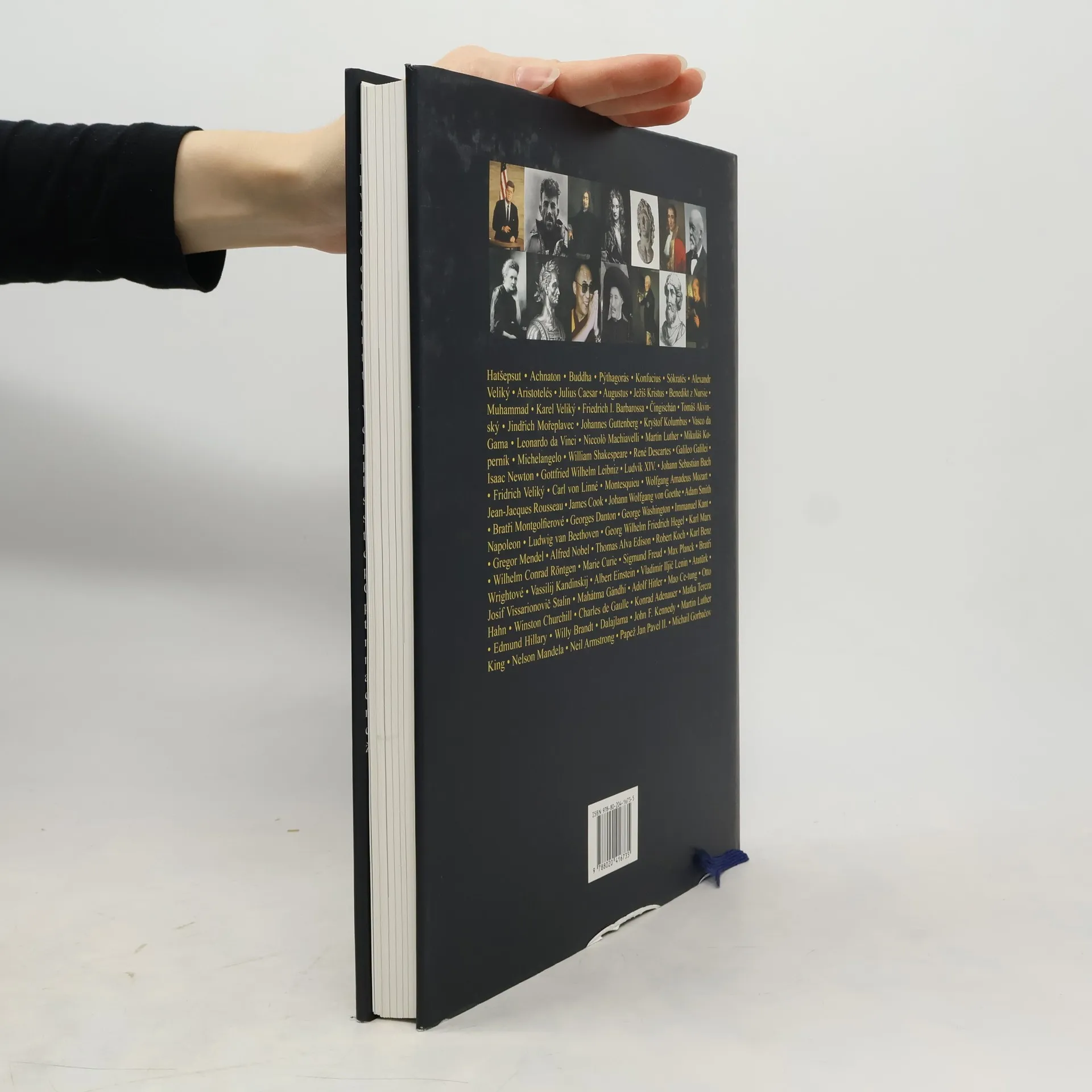 Výpravná kniha o historických osobnostech. Ilustrovaná publikace představuje v průřezu dějin přes 70 velkých postav, které vynikly v nejrůznějších oborech. Dějiny tvoří lidé. Tato kniha vedle velkých myslitelů od Aristotela a Konfucia k Rousseauovi, Kantovi, Goethovi a Gandhímu představují milníky vědy a techniky stejně jako činy velkých dobyvatelů. Věk objevitelů počíná Jindřichem Mořeplavcem a pokračuje přes Kryštofa Kolumba a Jamese Cooka až Neilu Armstrongovi, prvnímu člověku na Měsíci. Shakespeare a Bach, da Vinci a Kandinsky nastoupili nové cesty v umění, kultuře a duchovním životě. V informačních rámečcích kniha objasní detaily, vysvětlí souvislosti a popíše důsledky. Biografické rámečky podávají celkový přehled o osobě a díle.