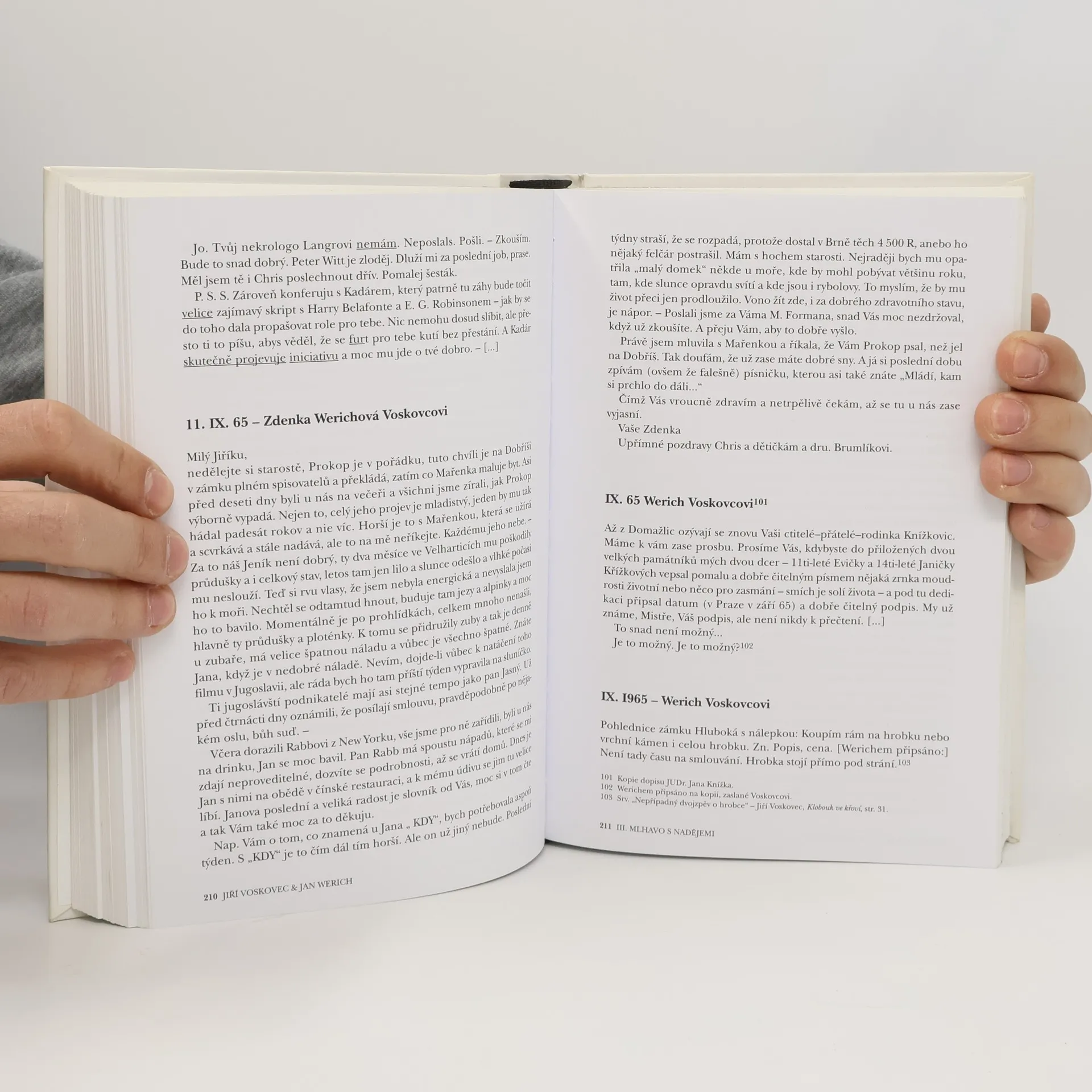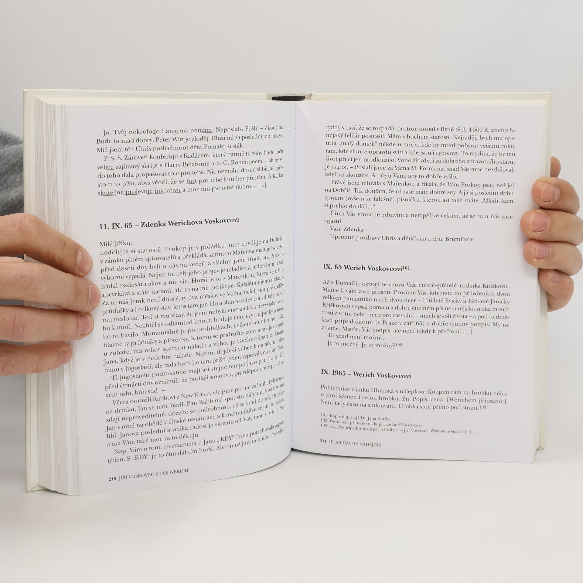 Werichovo zdraví se zhoršuje a Voskovce stále více vyčerpává existenční boj. V dobách, kdy Werich jde z jedné nemocnice do druhé, přibývá dopisů Werichovy ženy Zdenky a také Voskovcových dopisů, adresovaných Zdence, určených však nejen pro ni, nýbrž i pro jejího muže a leckdy i pro jejich dceru Janu. A tak oba přátele trpí každý jiným způsobem, při tom však neztrácejí smysl pro humor. Druhý svazek korespondence tvůrců Osvobozeného divadla poodhaluje roušku nad jejich uměleckým i osobním životem v 60. letech minulého století, přibližuje jejich plány i zmařené naděje, názory na nastupující uměleckou generaci. V dnešní době esemesek a emailů představuje Voskovcův a Werichův listář také rehabilitaci dopisu jako literárního útvaru. Jejich dopisy i nadále oslňují jako nádherná literatura, plná hluboké moudrosti, baví svým klaunstvím a zároveň dojímají smutkem exilu vnitřního i vnějšího. Jsou nejen důležitým dokumentem těžkého údobí českých dějin, ale i významným obohacením české literatury. Drruhý svazek zahrnuje období let 1963 až 1968.
