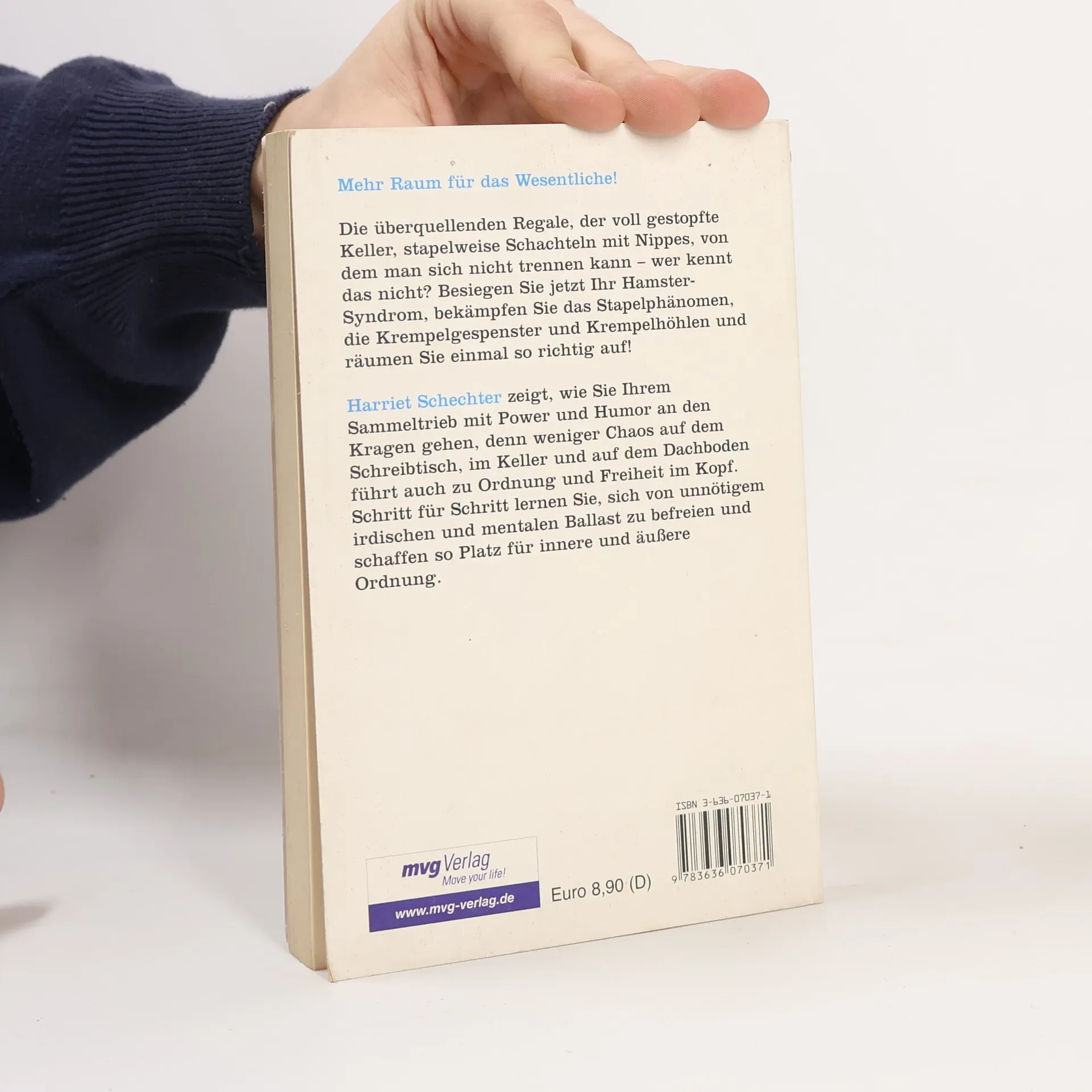 Warum ist es so schwer, die alten Zeitungen zu entsorgen, abgetragene Pullover in die Altkleidersammlung zu geben oder den abgewetzten Sessel zum Sperrmüll zu stellen? Harriet Schechter stiftet Sinn für Ordnung - in Kopf und Keller. Unter ihrem Kommando wird das Haus bis unters Dach durchforstet, nach Nützlichem und Überflüssigem durchkämmt. "Entrümpeln Sie Ihr Leben!" löst mentale Blockaden und macht Platz für einen aufgeräumten Zustand - innerlich und äußerlich.