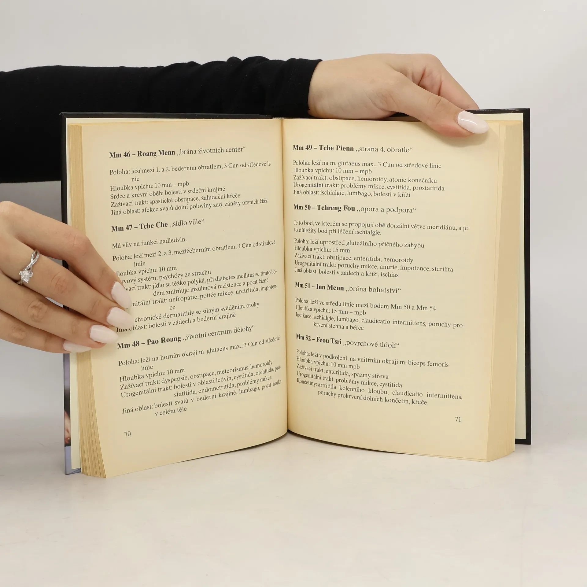 Publikace je základním přehledem poznatků o akupunktuře. Po stručném pojednání o jejím vývoji v Číně tvoří hlavní část knihy přehled všech akupunkturních bodů na meridiánech a jejich vliv na nemoci lidského těla.