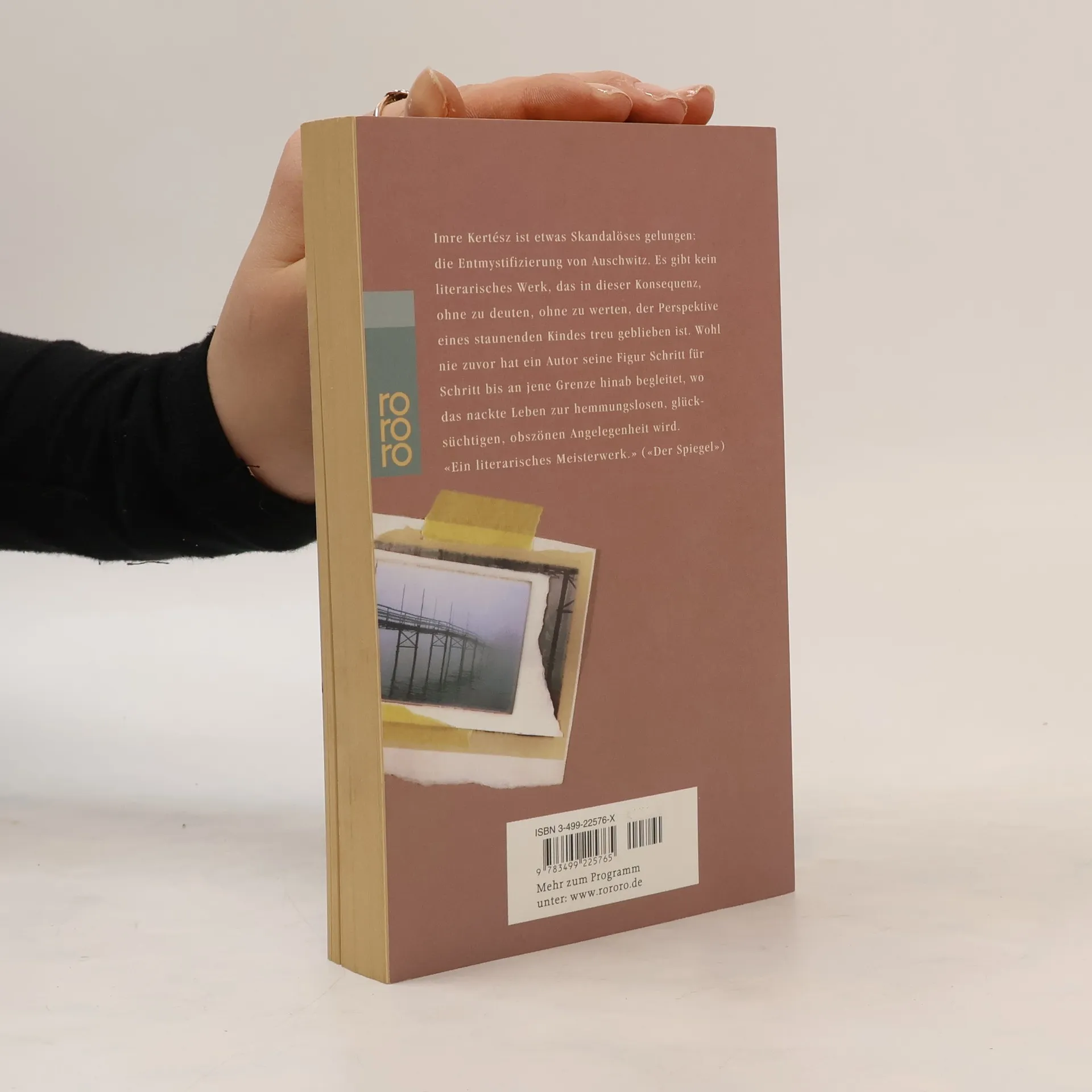 Imre Kertész ist etwas Skandalöses gelungen: die Entmystifizierung von Auschwitz. Es gibt kein literarisches Werk, das in dieser Konsequenz, ohne zu deuten, ohne zu werten, der Perspektive eines staunenden Kindes treu geblieben ist. Wohl nie zuvor hat ein Autor seine Figur Schritt für Schritt bis an jene Grenze hinab begleitet, wo das nackte Leben zur hemmungslosen, glücksüchtigen, obszönen Angelegenheit wird.