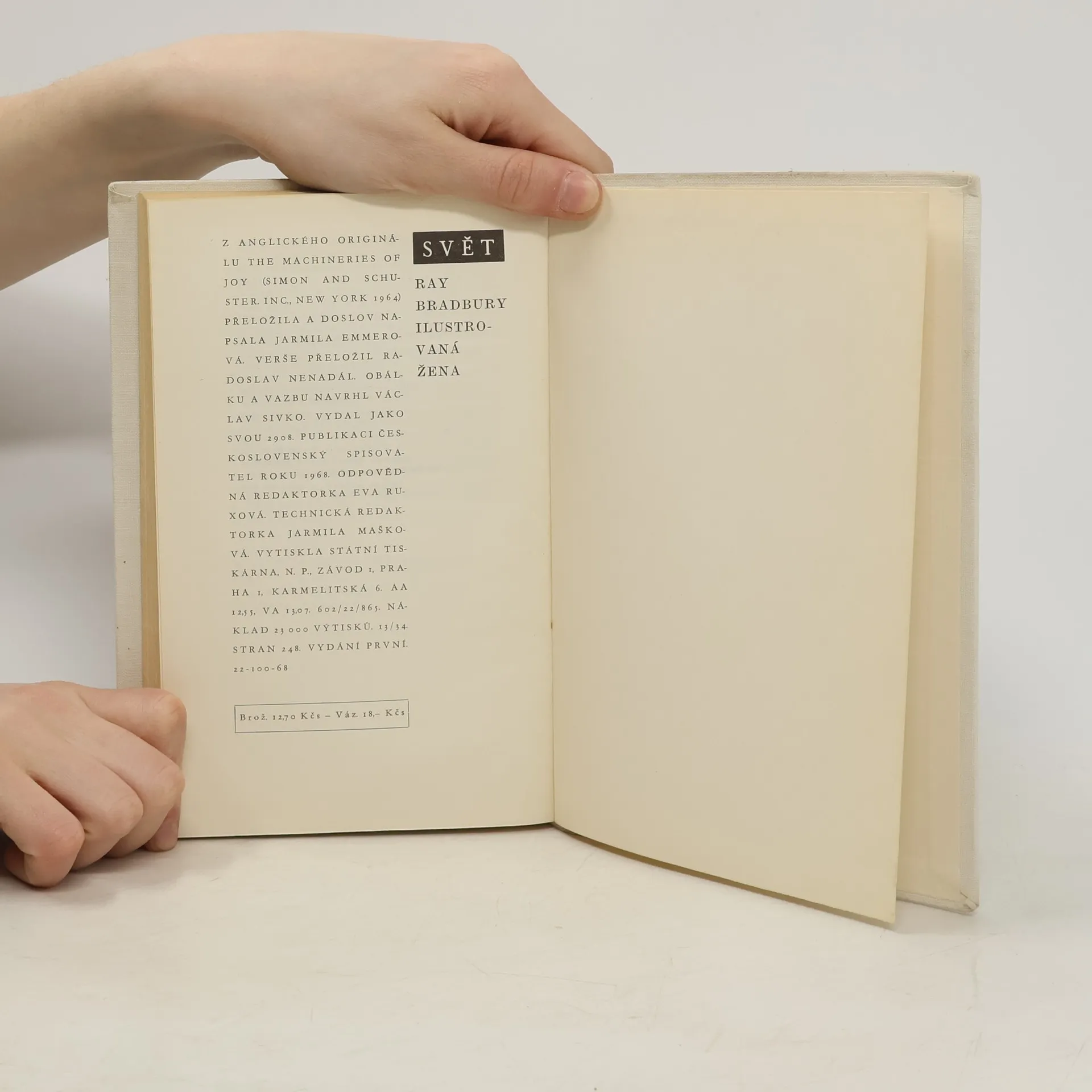 Tato Bradburyho kniha zahrnuje povídky z období let 1960 až 1964 a přestavuje nejširší námětovou škálu jeho tvorby: vynikající povídky science fiction z prostředí Měsíce a Marsu, hrůzostrašné povídky nejlepší poeovské linie, povídky s námětem fantastického převtělování, povídky zirského prostředí silného humanistického ladění a povídky výstižně charakterizující život dnešní newyorské společnosti z literárního a filmového prostředí. Bradbury znamenitě domýšlí situace, do nichž technická civilizace může zavést v blízké budoucnosti, a paradoxně je konfrontuje s prostými touhami lidského srdce. Je autorem úžasné fantazie a rozletu smělých představ, které ztvárňuje formou často poetického ladění. Fantastická básnivost vtiskla Bradburyho dílu charakteristickou pečeť, takže jeho knihy jsou pro čtenáře opravdovým požitkem. 22-100-68
