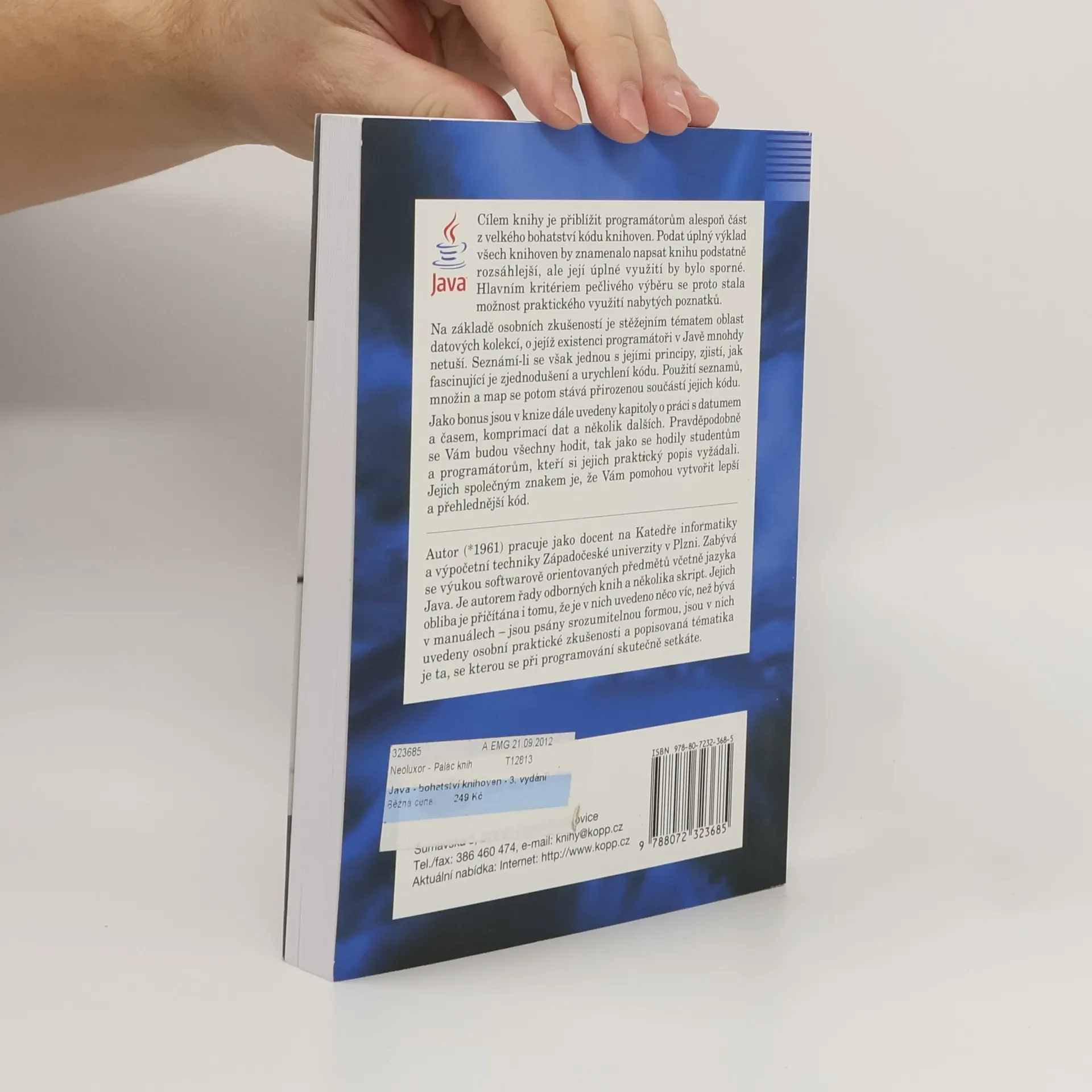 Cílem knihy je přiblížit programátorům alespoň část z velkého bohatství kódu knihoven. Podat úplný výklad všech knihoven by znamenalo napsat knihu podstatně rozsáhlejší, ale její úplné využití by bylo sporné. Hlavním kritériem pečlivého výběru se proto stala možnost praktického využití nabytých poznatků. Na základě osobních zkušeností je stěžejním tématem oblast datových kolekcí, o jejíž existenci programátoři v Javě mnohdy netuší. Seznámí-li se však jednou s jejími principy, zjistí, jak fascinující je zjednodušení a urychlení kódu. Použití seznamů, množin a map se potom stává přirozenou součástí jejich kódu. Jako bonus jsou v knize dále uvedeny kapitoly o práci s datumem a časem, komprimací dat a několik dalších. Pravděpodobně se Vám budou všechny hodit, tak jako se hodily studentům a programátorům, kteří si jejich praktický popis vyžádali. Jejich společným znakem je, že Vám pomohou vytvořit lepší a přehlednější kód. 3.vydání