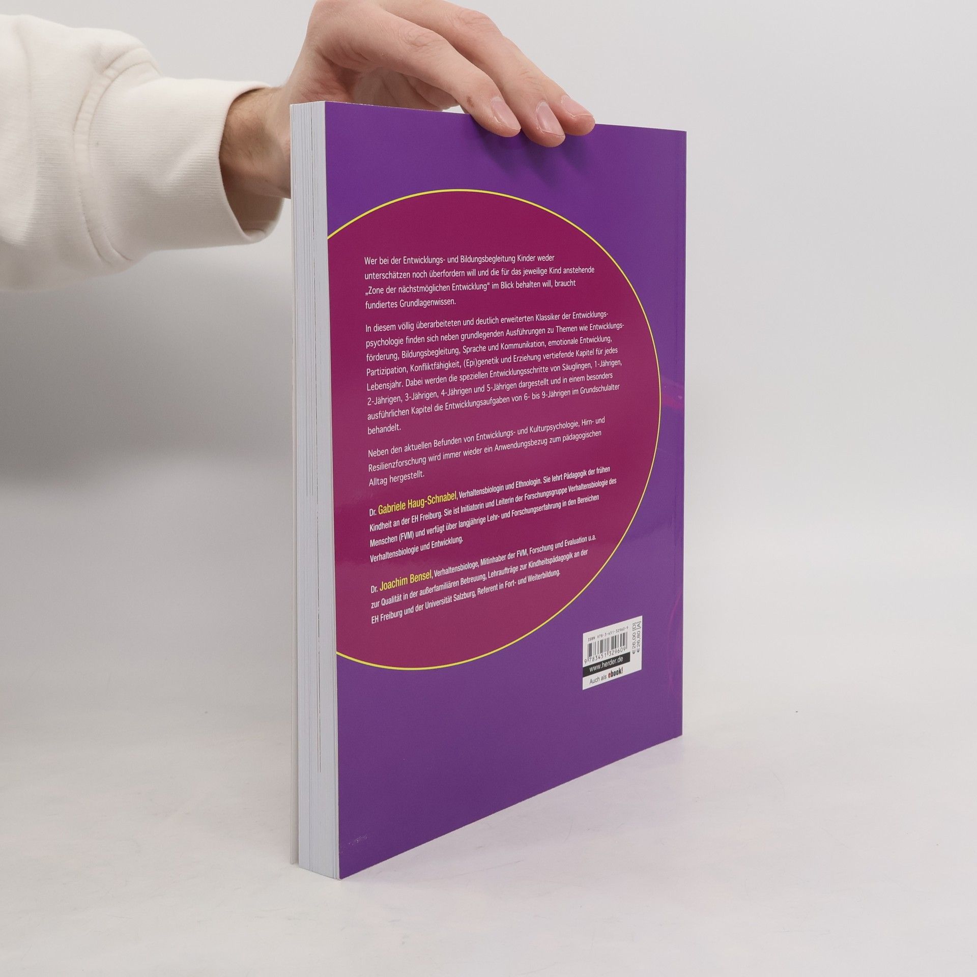 In der pädagogischen Arbeit mit Kindern ergeben sich immer wieder Fragen wie die folgenden: Welche Bedingungen beeinflusst die Entwicklung? Wie kann auf die speziellen Entwicklungsbedürfnisse der Kinder eingegangen werden? Dieses Buch von Dr. Gabriele Haug-Schnabel und Dr. Joachim Bensel beschreibt die neuesten Erkenntnisse der Entwicklungspsychologie, Säuglings- und Hirnforschung sowie der Verhaltensbiologie. Eine besonders wichtige Rolle nimmt die Betreuungs-/Bezugsperson als Entwicklungsbegleiterin ein. Das perfekte Grundlagenwerk, um umfassendes Entwicklungswissen kompakt anzubieten.
