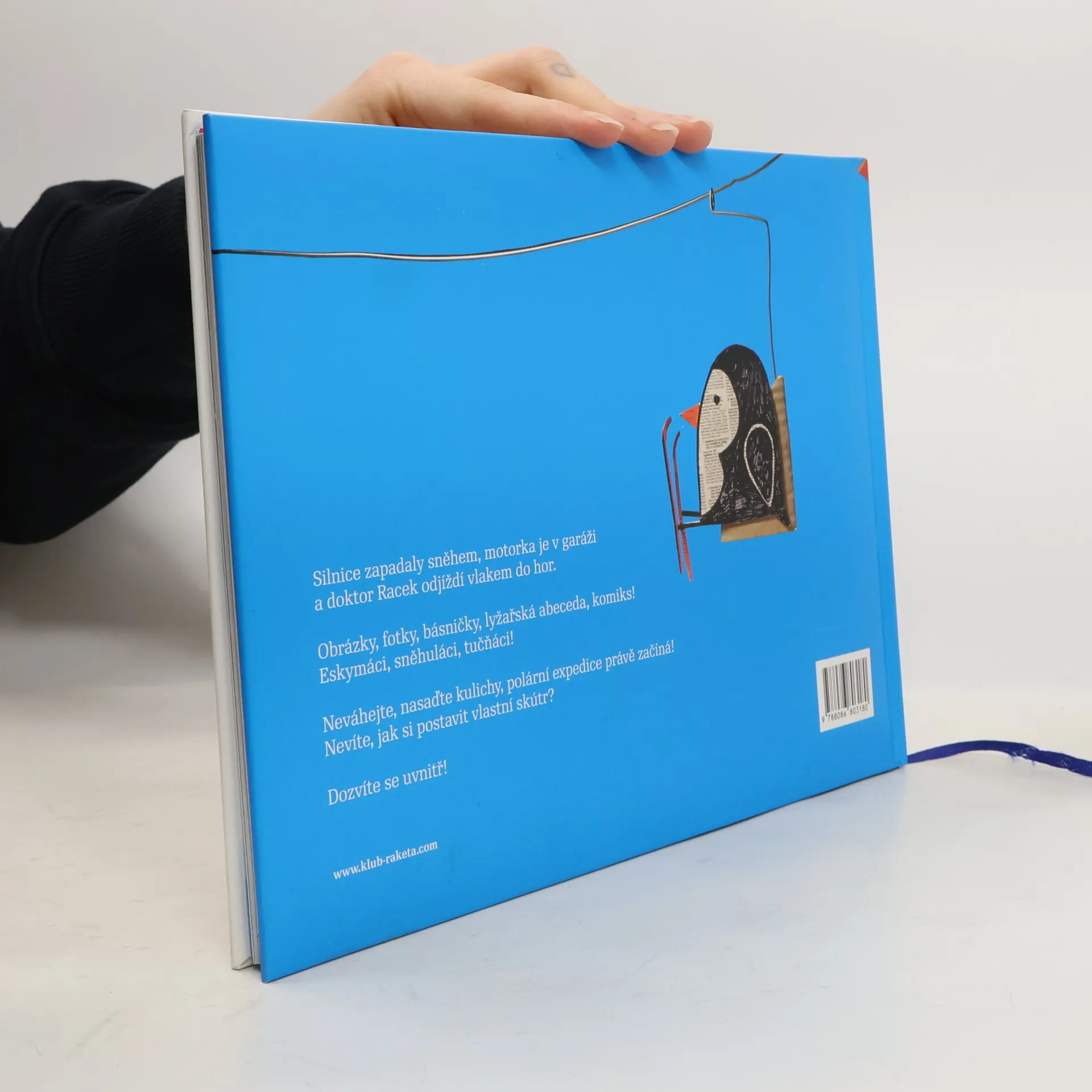 Netradiční hravá knížka pro děti plná fotek, obrázků, básniček, s komiksem a příručkou lyžařské abecedy pro čtenáře ve věku 5-8 let. Silnice zapadaly sněhem, motorka je v garáži a doktor Racek odjíždí vlakem do hor. Obrázky, fotky, básničky, lyžařská abeceda, komiks! Eskymáci, sněhuláci, tučňáci! Neváhejte, nasaďte kulichy, polární expedice právě začíná! Navazuje na knihu Doktor Racek jede na prázdniny, která obdržela cenu Zlatá stuha.