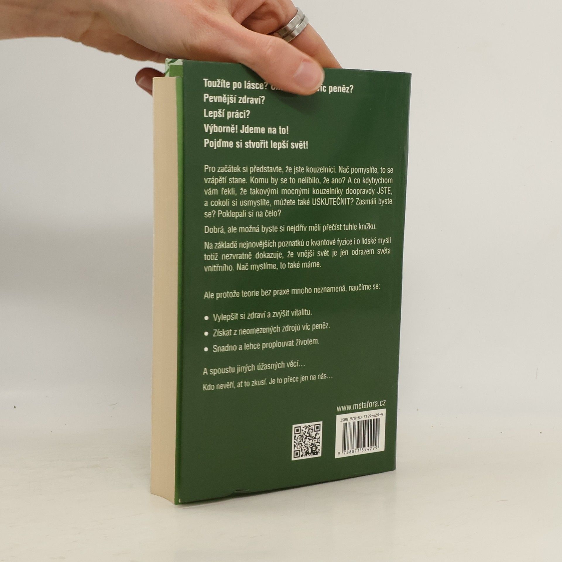 O tom, že ve své mysli skrýváme neuvěřitelnou, netušenou a nesmírně mocnou sílu, dnes už nepochybuje téměř nikdo. O podobných věcech běžně vycházejí tlusté knihy všemožných odborníků, ale jen málo takových, kterým by rozuměl úplně každý. A právě proto přichází se svou prací Barbara Bergerová. Její knížka se netváří ani dost málo vědecky, nepoučuje sáhodlouze a suchopárně, přestože z poznatků nejmodernější vědy vychází. Místo toho předkládá čtenáři rychlé a skutečně účinné techniky, které je doslova hračka ověřit v praxi. Snadno pochopitelné, jednoduché postupy pomohou v řešení zdravotních problémů, tíživé finanční situace nebo životních krizí. Přestože se to zdá neuvěřitelné, ovládneme-li sílu vlastní mysli, můžeme si stvořit doslova jiný ?- samozřejmě že lepší ?- život. Naučíme se odmítat to, co si nepřejeme, a naopak přivolávat do života to, co chceme. 2. doplněné vydání