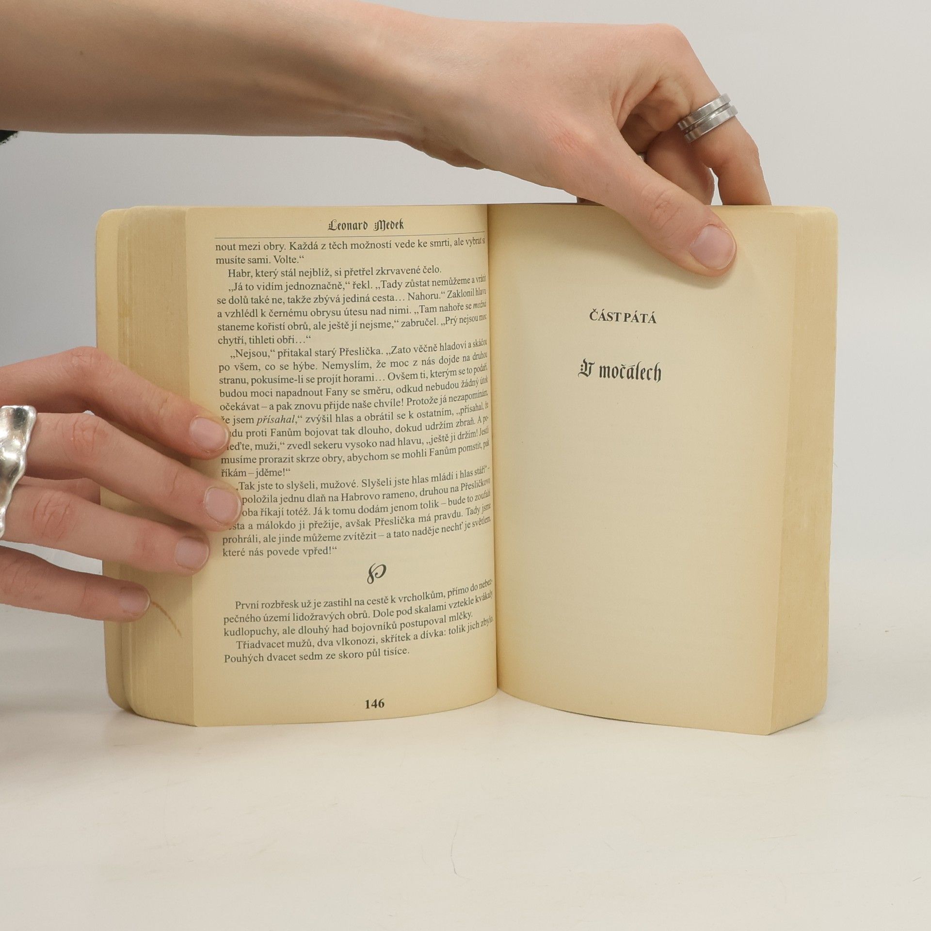 Sedm přízračných bílých koní Smrti křižuje oblohou a nikdo z družiny, doprovázející goonu Jívu z Briny na cestě za spravedlivou odplatou, si nemůže být jist, že nenasedne na běloušův hřbet jako další v pořadí… Přesto musejí bojovat – ne pro slávu, ale o život pro sebe a spravedlnost pro utlačovaný národ. Vědí, že většina z nich nepřežije… Leondard Medek, autor knihy „Dobrodruh“ a spoluautor románu „Stín modrého býka“ se v této samostatné knize opět představuje jako mistr epické fantasy.