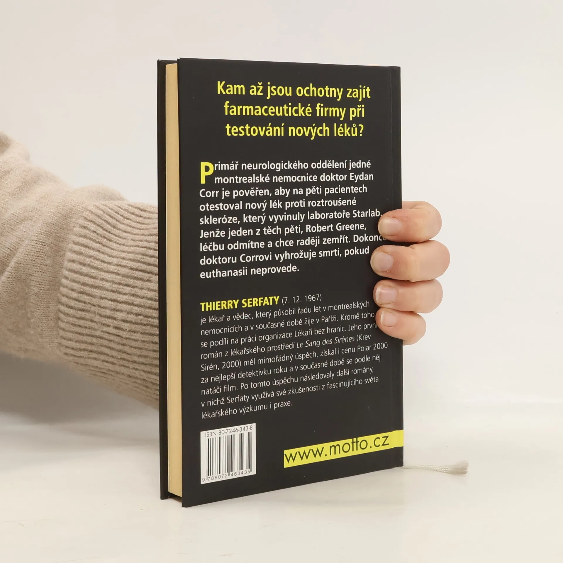 Kam až jsou ochotny zajít farmaceutické firmy při testování nových léků? Primář neurologického oddělení jedné montrealské nemocnice doktor Eydan Corr je pověřen, aby otestoval nový lék proti roztroušené skleróze, který vyvinuly laboratoře Starlab, na pěti pacientech. Jenže jeden z těch pěti, Robert Greene, léčbu odmítne a chce raději zemřít. Dokonce doktoru Corrovi vyhrožuje smrtí, pokud euthanasii neprovede. Doktor Corr se tak ocitne mezi dvěma mlýnskými kameny: na jedné straně ke všemu odhodlaný psychopatický pacient, na druhé straně šéfové laboratoře, kteří potřebují za každou cenu kladné výsledky testů, aby jim konečně lék přinesl tolik očekávané bohatství.