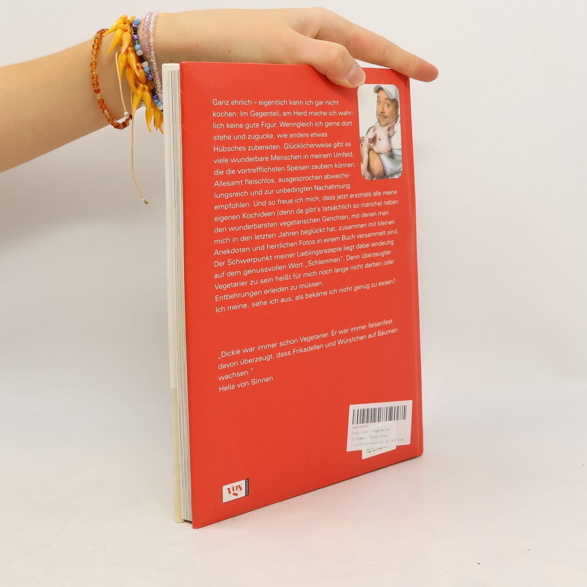 Fleischlos glücklich§§Dirk Bach - einer der beliebtesten und sympathischsten Köpfe im deutschen Fernsehen - ist nicht nur überzeugter Vegetarier, vor allen Dingen ist er ein ausgesprochener Genießer, der gut und gerne isst. Dass ihm dabei nicht ausschließlich Salate und junges Gemüse auf den Teller kommen, versteht sich fast von selbst - schließlich schwört er weit mehr noch auf die fleischlose Currywurst mit Pommes.§§"Vegetarisch schlemmen" stellt über 50 von Dirk Bachs absoluten Lieblingsrezepten bei einem Streifzug durch seinen fleischlosen Alltag vor - zeigt ihn beim Essen zwischendurch im Büro, beim Catering am Dreh, beim Einkauf seiner Lieblings-Sojaschnitzel im Supermarkt sowie Zuhause beim Selberkochen, mit Freunden oder allein - und das alles garniert mit kleinen Anekdoten und launigen Geschichten aus dem Leben eines leidgeprüften Vegetariers, der sich den Spaß am Essen nicht verderben lässt.