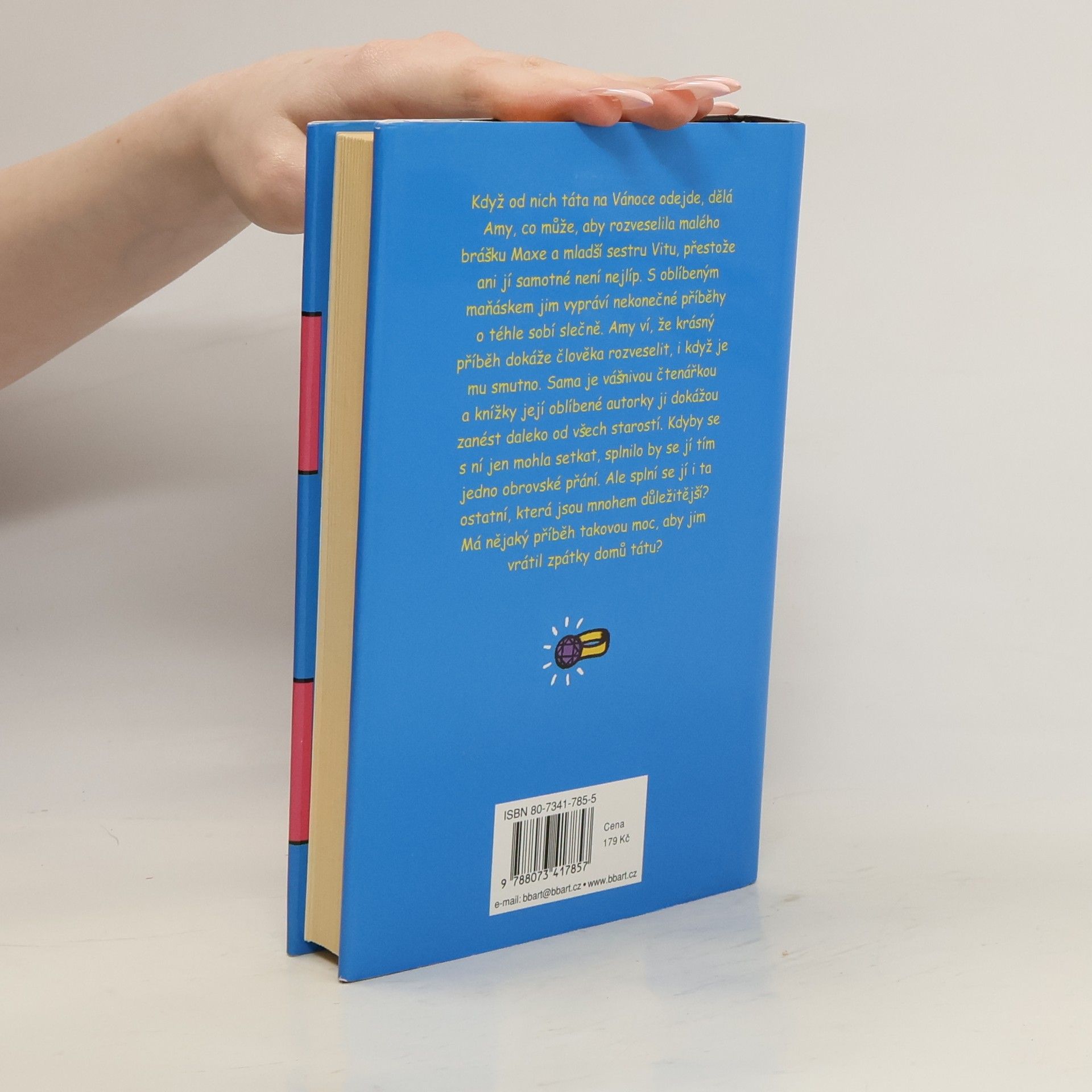 Když od nich táta na Vánoce odejde, dělá Amy, co může, aby rozveselila malého brášku Maxe a mladší sestru Vitu, přestože ani jí samotné není nejlíp. S oblíbeným maňáskem jim vypráví nekonečné příběhy o téhle sobí slečně. Amy ví, že krásný příběh dokáže člověka rozveselit, i když je mu smutno. Sama je vášnivou čtenářkou a knížky její oblíbené autorky ji dokážou zanést daleko od všech starostí. Kdyby se s ní jen mohla setkat, splnilo by se jí tím jedno obrovské přání. Ale splní se jí i ta ostatní, která jsou mnohem důležitější?