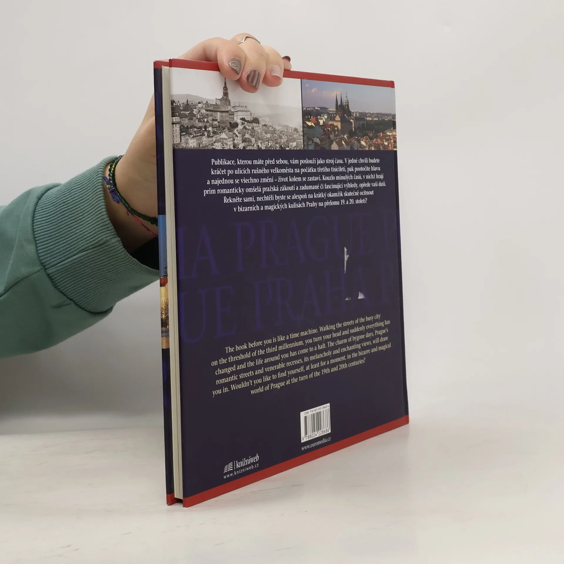 Publikace je unikátním souborem sedmdesáti srovnávacích fotografií historického jádra Prahy, doprovázených půvabnými, a přitom zasvěcenými texty v českém a anglickém jazyce. Ke snímkům 100 let starým pořídili fotografové současný protějšek v přesně stejném záběru. Dvě dvojice panoramatických záběrů jsou umístěny na rozkládacích stranách. Kniha je jedinečným svědectvím toho, že Praha před sto lety byla okouzlující a tajemná – stejně jako dnes.