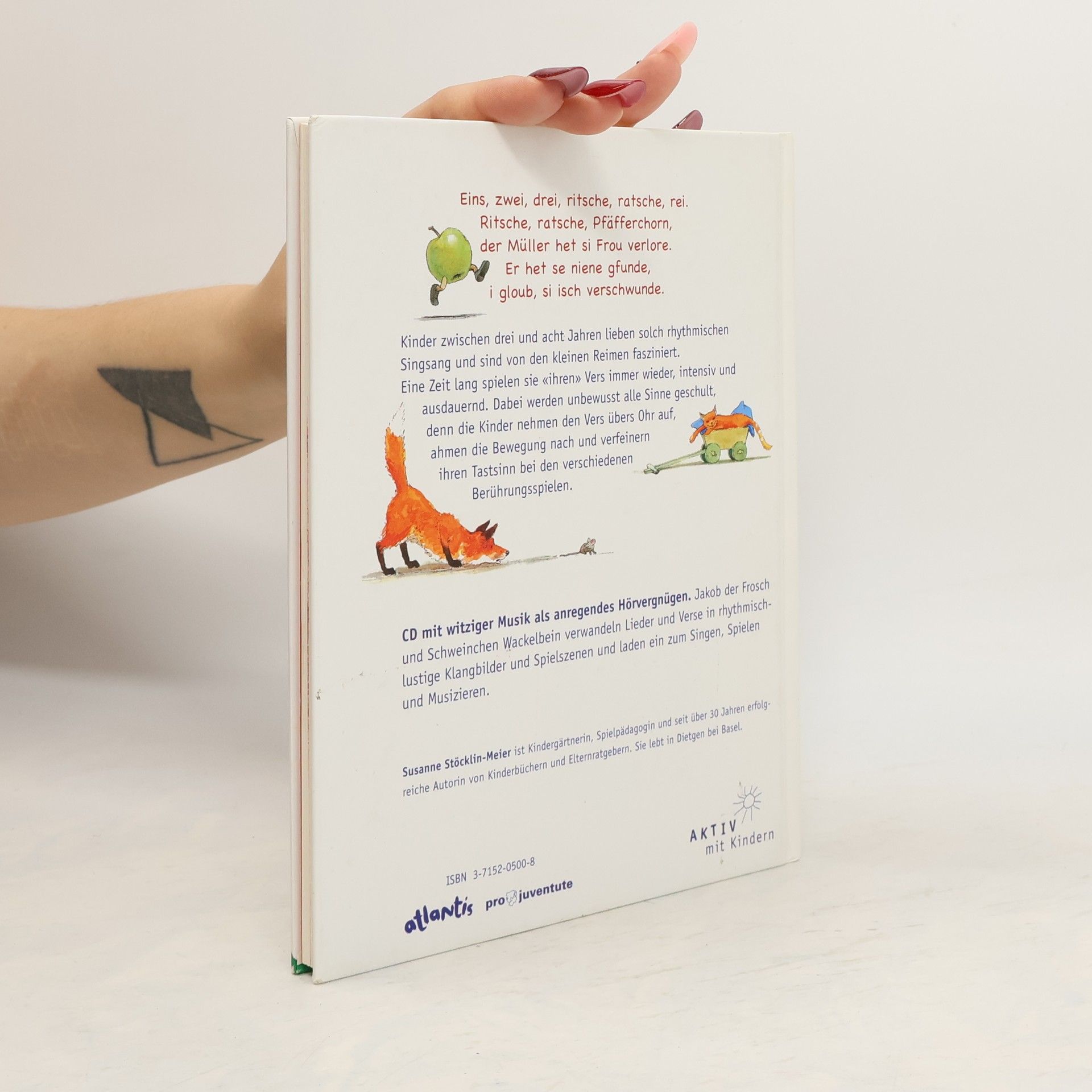 Kinder zwischen drei und acht Jahren brauchen rhythmischen Singsang und kleine Verse. Sie brauchen solche Spielbegleiter, denn sie üben damit vieles ein: Das Kind lernt den Vers übers Gehör, nimmt die passenden Bewegungen mit den Augen wahr und ahmt sie selbst nach. Kurzum, Spielverse bieten umfassende Sinnesschulung, zudem fördern Handspielverse und Berührungspiele nicht nur den Tastsinn, sondern sind allem voran ein großes Vergnügen. Das Buch enthält viele farbige Illustrationen, zu jedem Vers Erläuterungen und Spielideen mit schwarz-weißen Bewegungsskizzen. Rhythmische Klangbilder und Spielszenen regen zum Mitsingen, Spielen und Musizieren an.