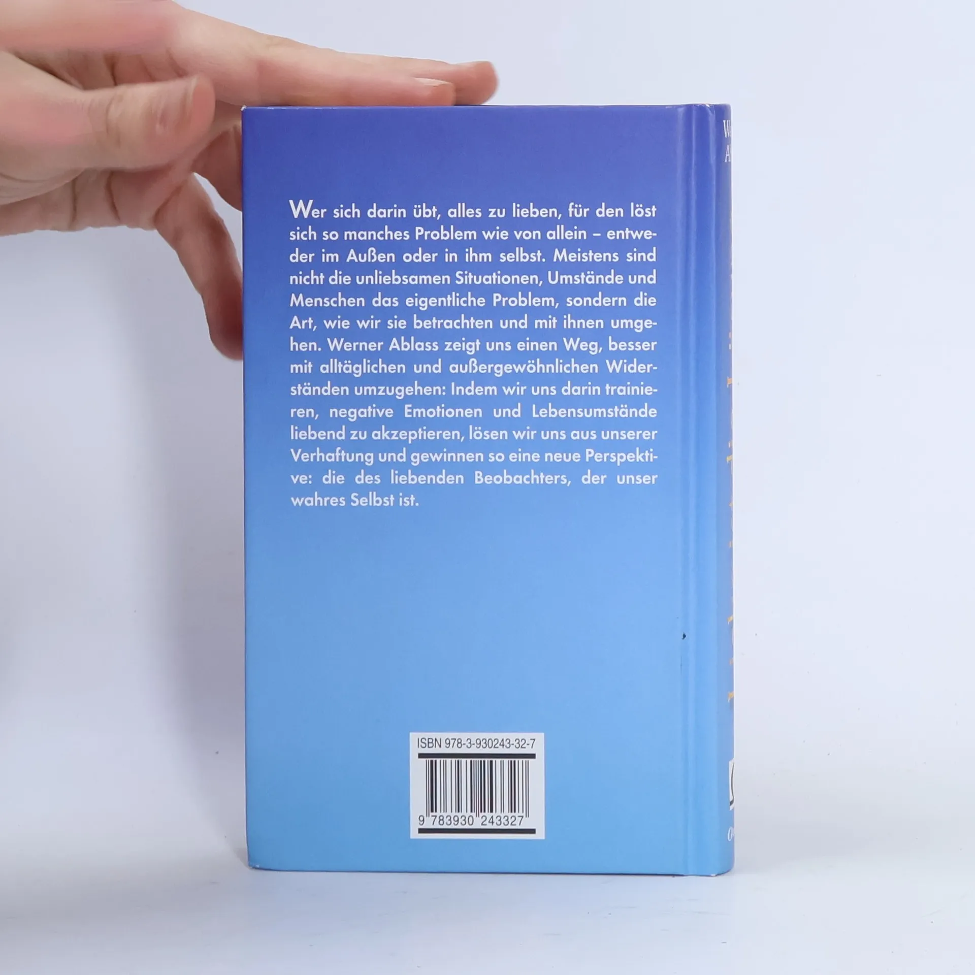 Wer sich in der Schwingung der Liebe übt, für den löst sich so manches Problem wie von allein - entweder im Außen oder in uns selbst. Meistens sind nicht die unliebsamen Situationen, Umstände und Menschen das eigentliche Problem, sondern die Art, wie wir sie betrachten und mit ihnen umgehen. Werner Ablass zeigt uns einen Weg, besser mit alltäglichen und außergewöhnlichen Widerständen umzugehen: Indem wir uns darin trainieren, unsere negativen Emotionen und Lebensumstände liebend zu akzeptieren, lösen wir uns aus unserer Verhaftetheit und gewinnen so eine neue Perspektive: die des liebenden Beobachters, der unser wahres Selbst ist. Werner Ablass war jahrelang im Management bekannter Markenartikelunternehmen tätig. 1994 machte sich der NLP-Master als Managementtrainer erfolgreich selbstständig. Privat interessiert er sich seit seiner Jugend brennend für Weisheitslehren und Erfolgsphilosophien. Besonders beeinflußt wurde er von Thaddeus Golas und dem indischen Advaita-Lehrer Ramesh S. Balsekar. Zum Weg des Liebens bietet er 2tägige Seminare an.