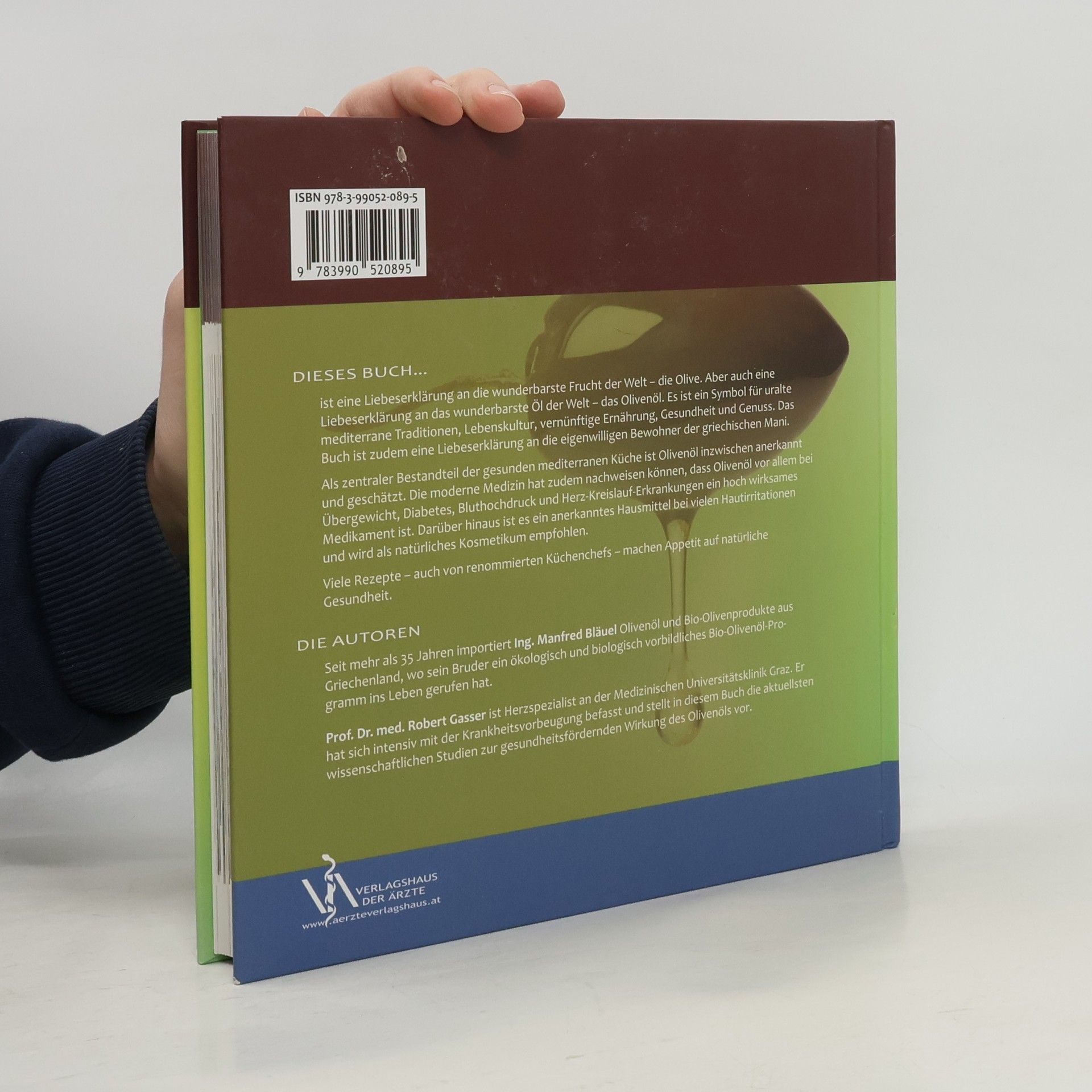 Liebeserklärung an ein traditionelles Nahrungsmittel. Ein aufwändiger Text-Bild-Band über Geschichte, Herstellung und Sortenvielfalt des Olivenöls. Dazu alles Wichtige zu den gesundheitlichen Aspekten der Olive, so etwa als „Medizin“ gegen Bluthochdruck, Diabetes, Krebs, Übergewicht oder Gelenkerkrankungen. Auch der kosmetische Einsatz der Olive wird beleuchtet. Zahlreiche mediterrane Rezepte runden dieses Buch ab.