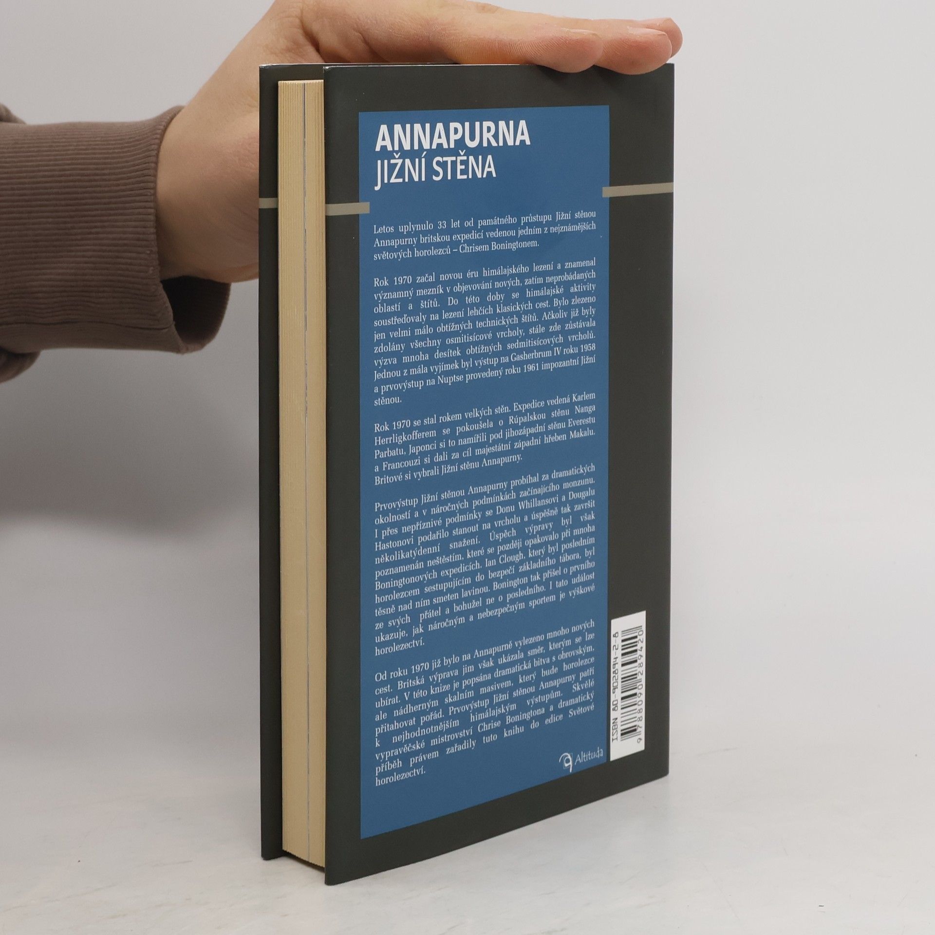 Mohutná Jižní stěna Annapurny dlouho hledala své přemožitele. Úspěch britské výpravy z roku 1970 a hlavně způsob, kterým horolezci vrcholu dosáhli, se navždy zapsal mezi velké himálajské výkony. V této knize je popsána dramatická bitva s obrovským, ale nádherným skalním masivem, který bude horolezce přitahovat pořád. Prvovýstup Jižní stěnou Annapurny patří k nejhodnotnějším himálajským výstupům. Skvělé vypravěčské mistrovství Chrise Boningtona a dramatický příběh .