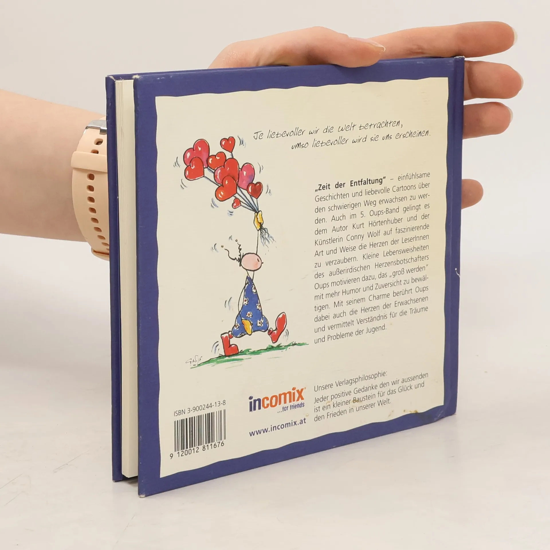Größer werden ist nicht schwer – Größe zeigen umso mehr. Liebevolle Geschichten und Cartoons über das Erwachsen werden, das bekanntlich ein ganzes Leben lang dauert. Kleine Lebensweisheiten motivieren das „groß werden" mit mehr Humor und Liebe zu bewältigen. Dabei bemüht sich Oups mit seinem Charme auch den Erwachsenen zu vermitteln, mehr Verständnis für die Träume und Probleme der Jugend zu zeigen. Mit einfachen Worten und wenigen Strichen werden die Herzen der LeserInnen bezaubert.
